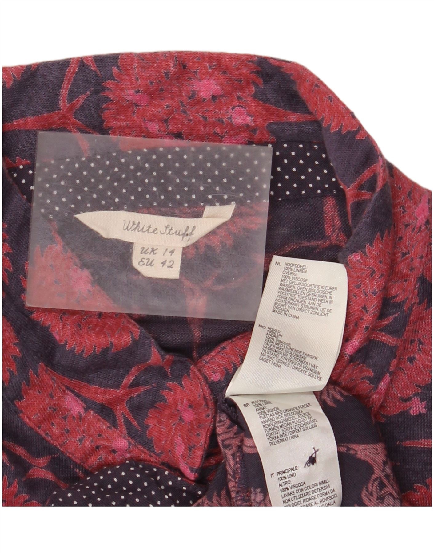 - Descriere AI: Acest top cu tunică pentru femei White Stuff este confecționat din lenjerie ușoară 100% in. Are un model floral uimitor de bleumarin și roșu. Decolteul cu guler și închiderea cu nasturi oferă un aspect clasic, rafinat. Mânecile trei sferturi oferă o potrivire confortabilă. Această tunică cu potrivire obișnuită include buzunare practice, îmbinând stilul cu ușurința de zi cu zi. Materialul său respirabil asigură confort.