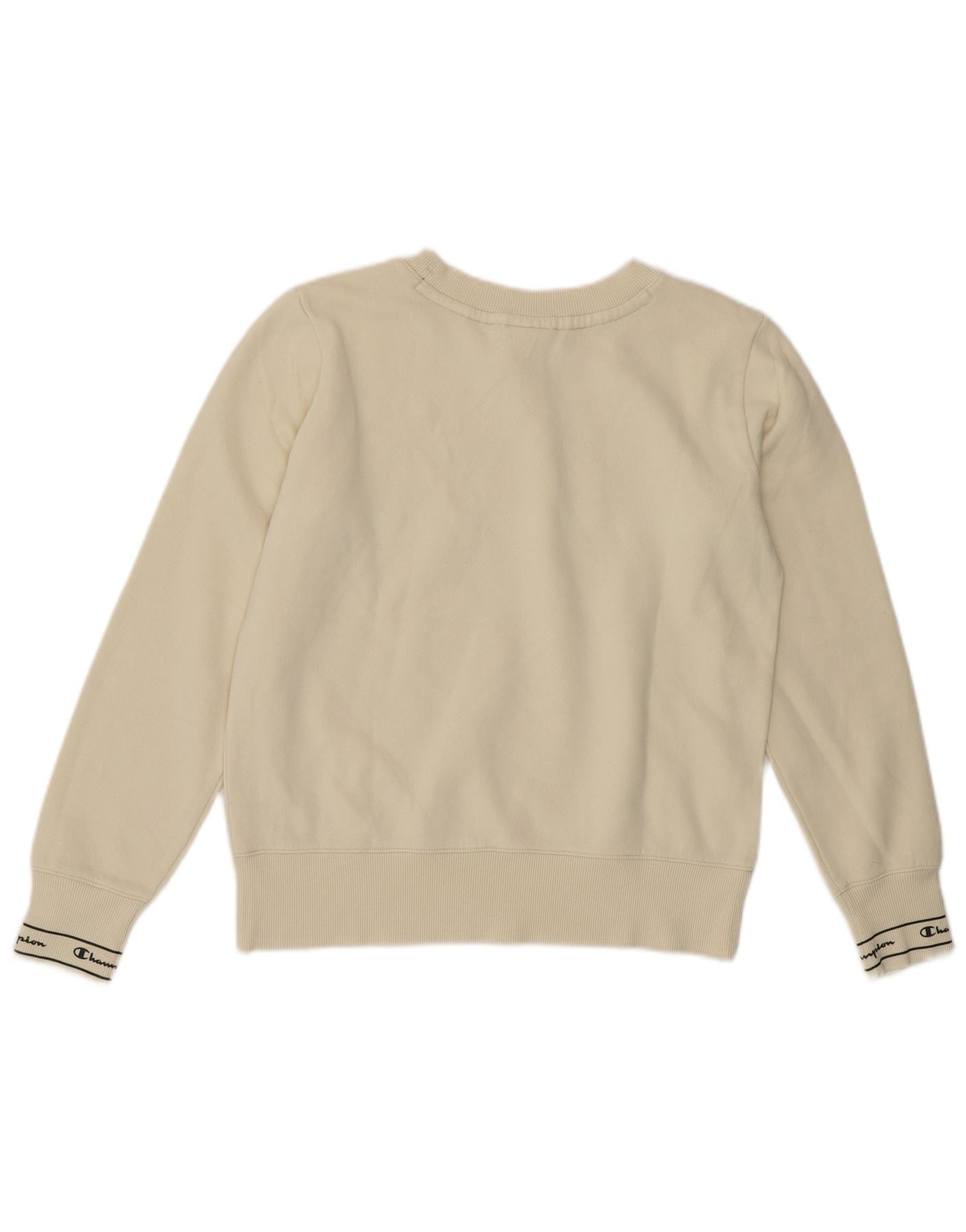 CHAMPION Womens Graphic Sweatshirt Jumper UK 14 Medium Off White Cotton