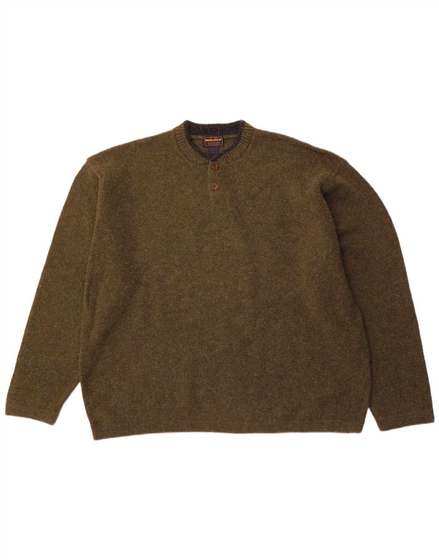 WOOLRICH Pulover pentru bărbați cu gât cu nasturi, 2XL, lână kaki