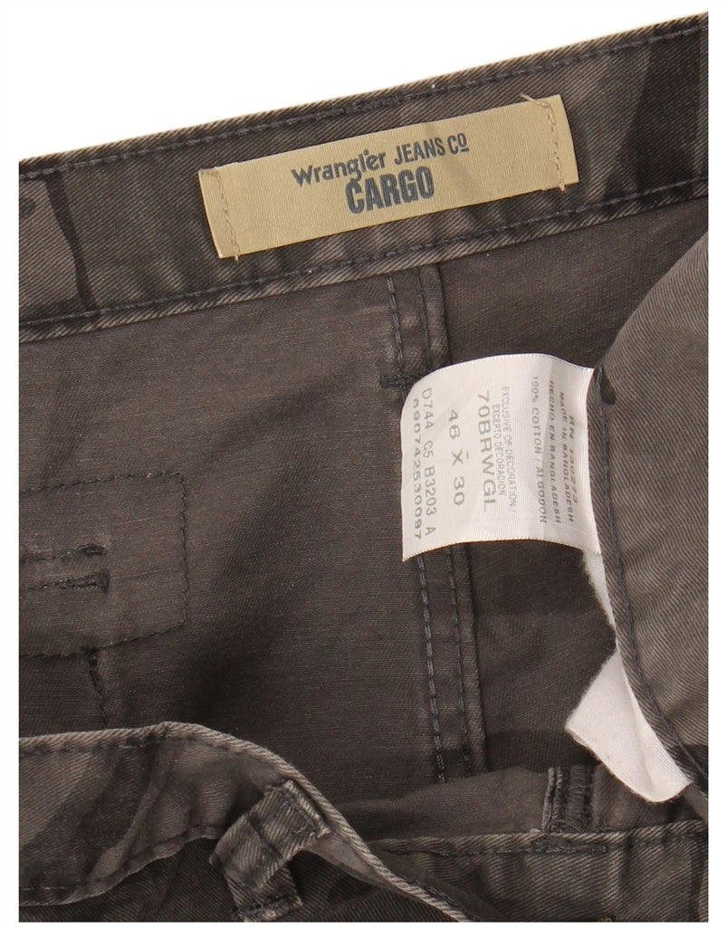 WRANGLER Mens Straight Cargo Trousers W46 L30 Grey Camouflage Cotton