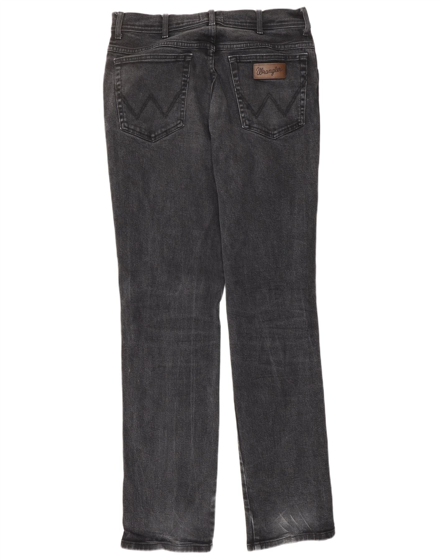- AI Description: These Wrangler mens straight jeans are crafted from black denim, offering a classic look with a comfortable stretch. They feature a regular fit through the leg for timeless appeal. The button closure ensures a secure and traditional fastening. Practical pockets provide functionality. A subtle logo accent adds a signature touch to this classic design. Designed for everyday wear, these jeans combine durability with effortless style.