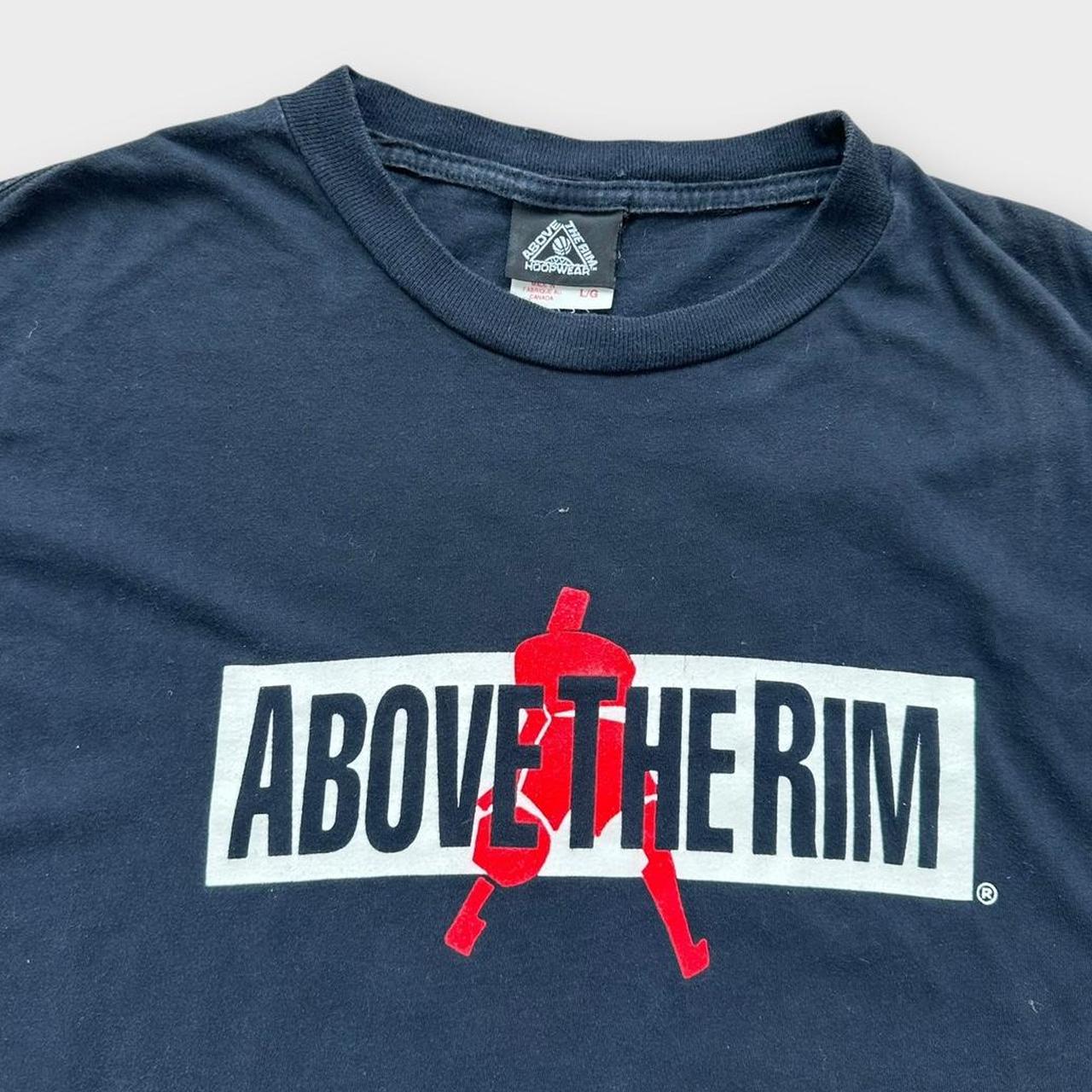 Tricou grafic Y2K Above the Rim, de la începutul anilor 2000, în negru, cu imprimeu pe piept și spate, fabricat în Canada