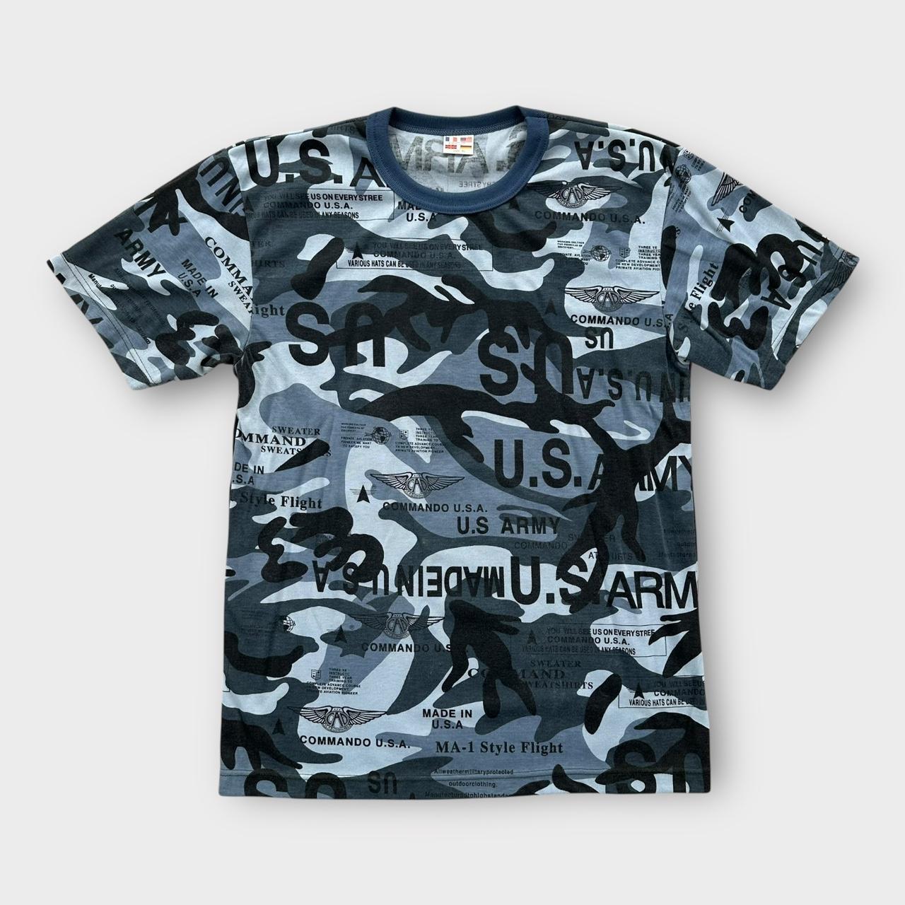 Camuflaj Y2K de la începutul anilor 2000, imprimat peste tot, tricou al Armatei SUA, în camo albastru și bleumarin