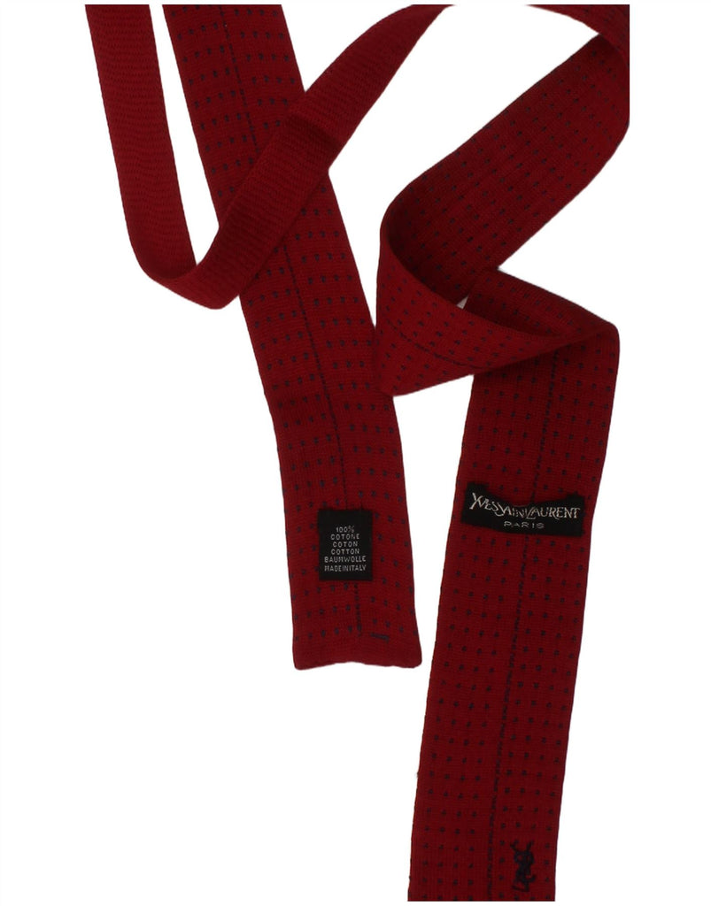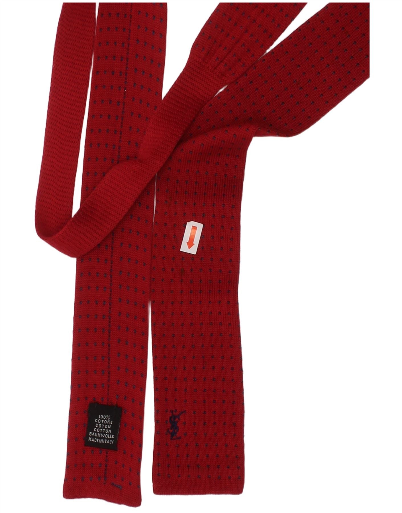 YVES SAINT LAURENT Mens Knit Tie One Size Red Spotted Cotton Designer