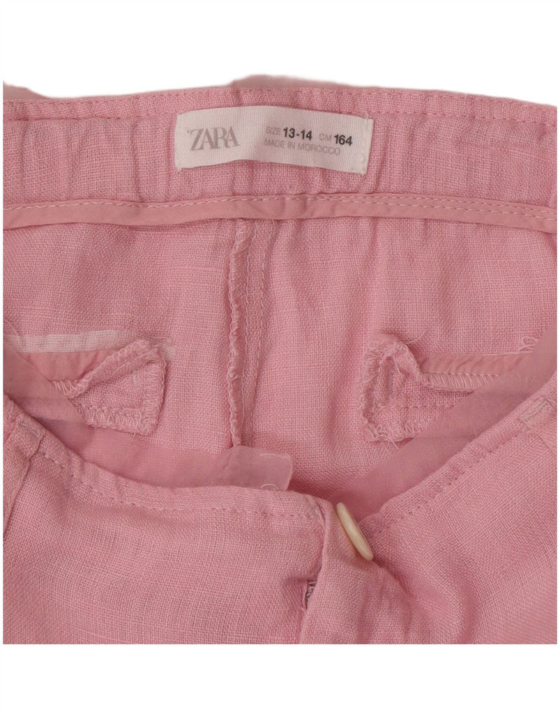 ZARA Girls High Waist Wide Leg Cropped Trousers 13-14 Years W24 L23 Pink