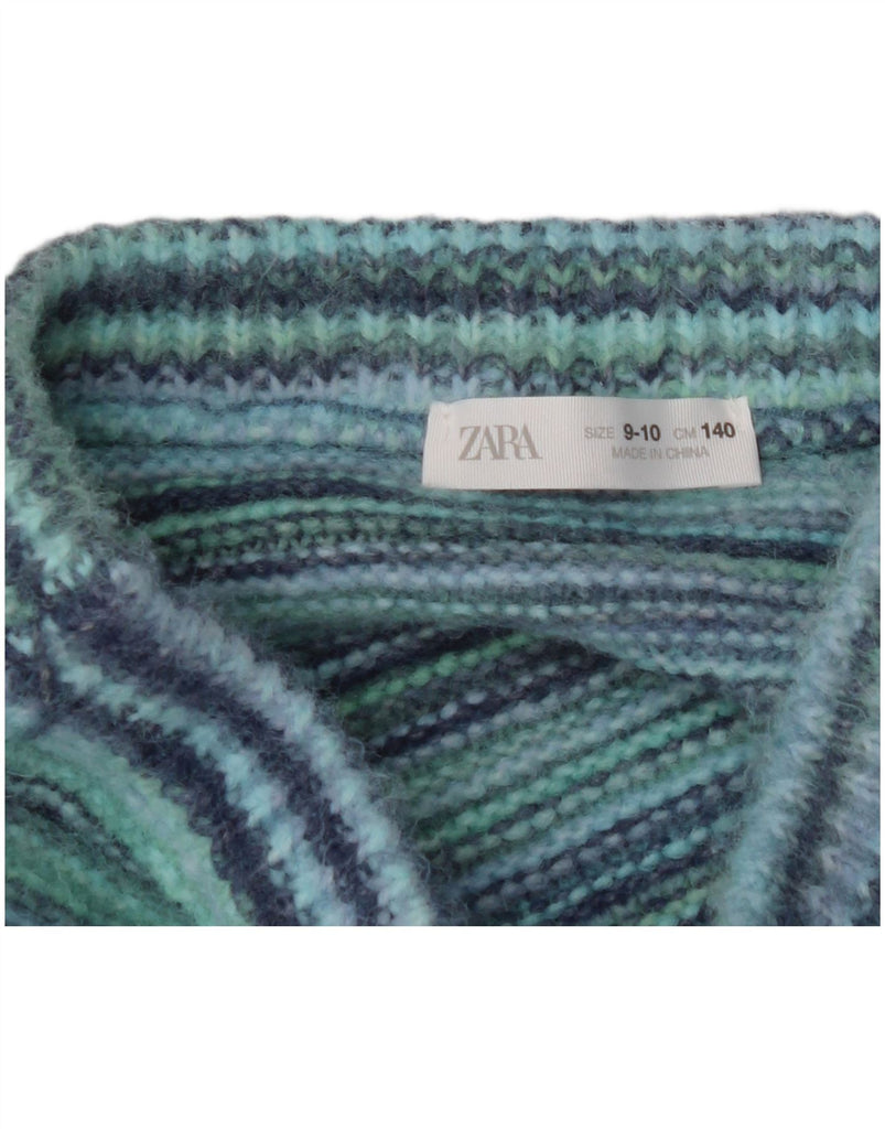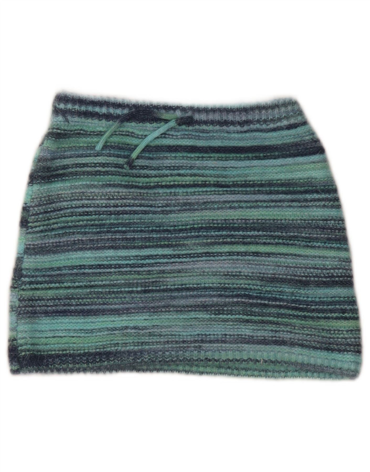 ZARA Girls Knit Mini Skirt 9-10 Years W22 Turquoise Pinstripe Polyester