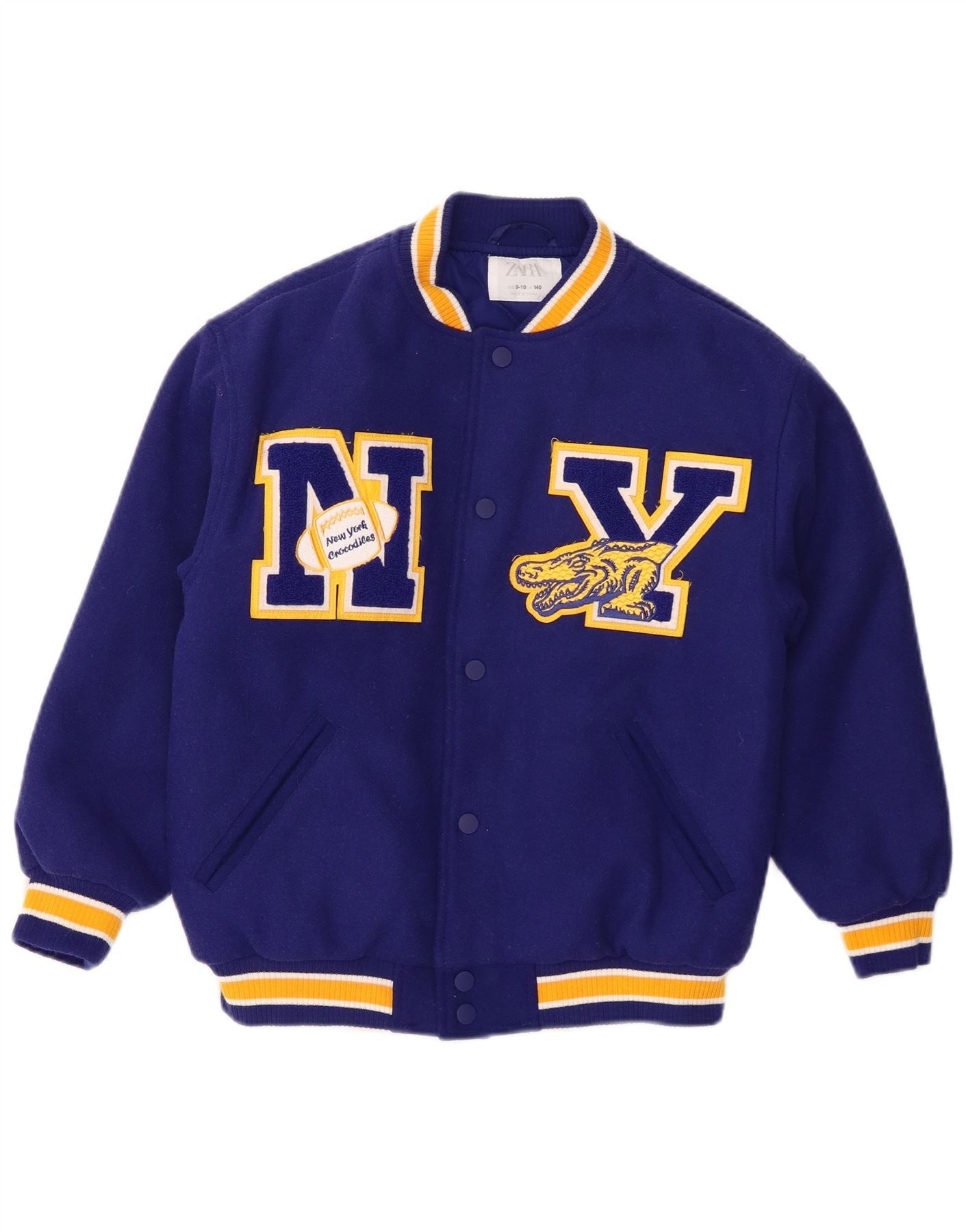 ZARA Fete New York Crocodiles Graphic Varsity Jacket 9-10 Ani Bleumarin