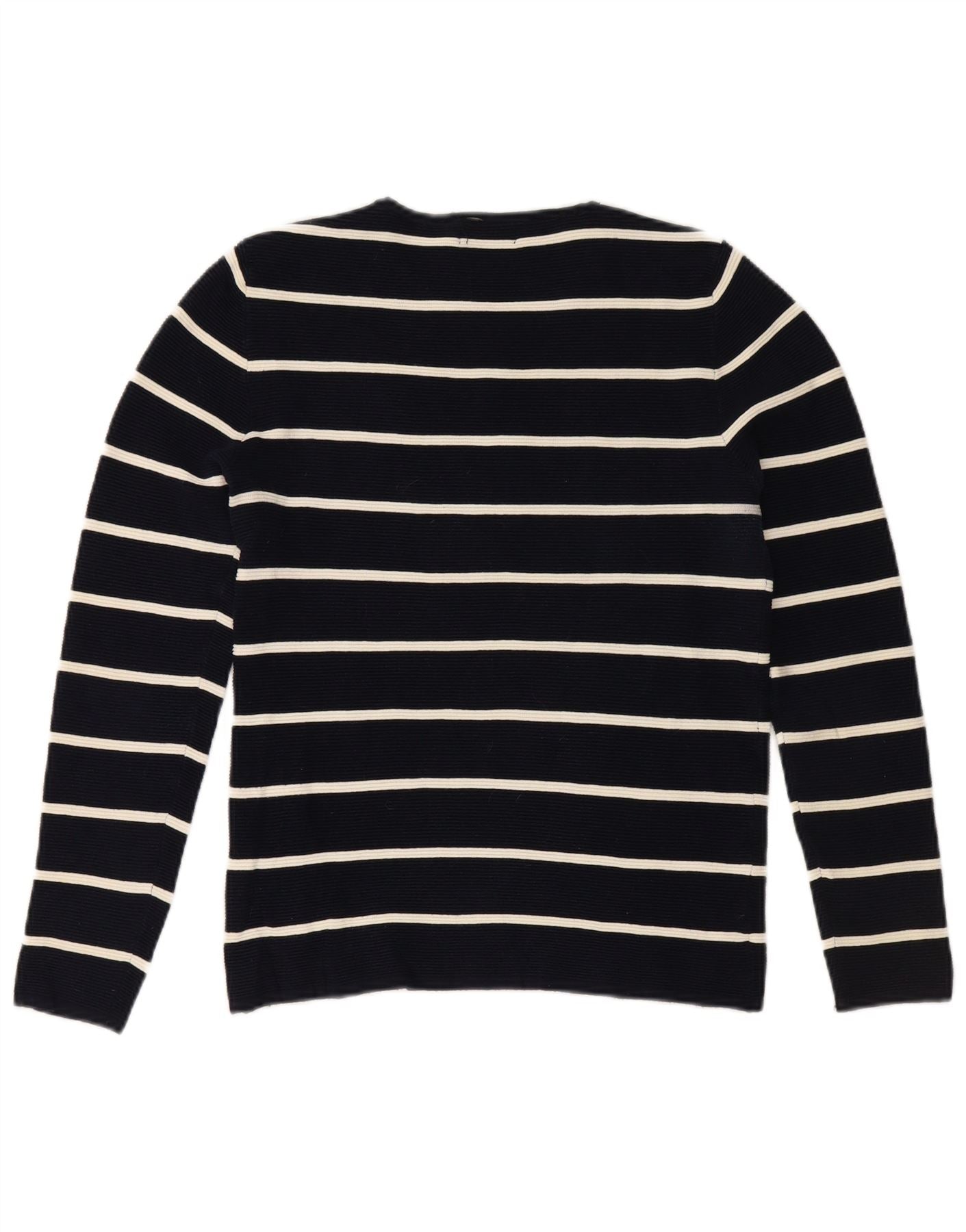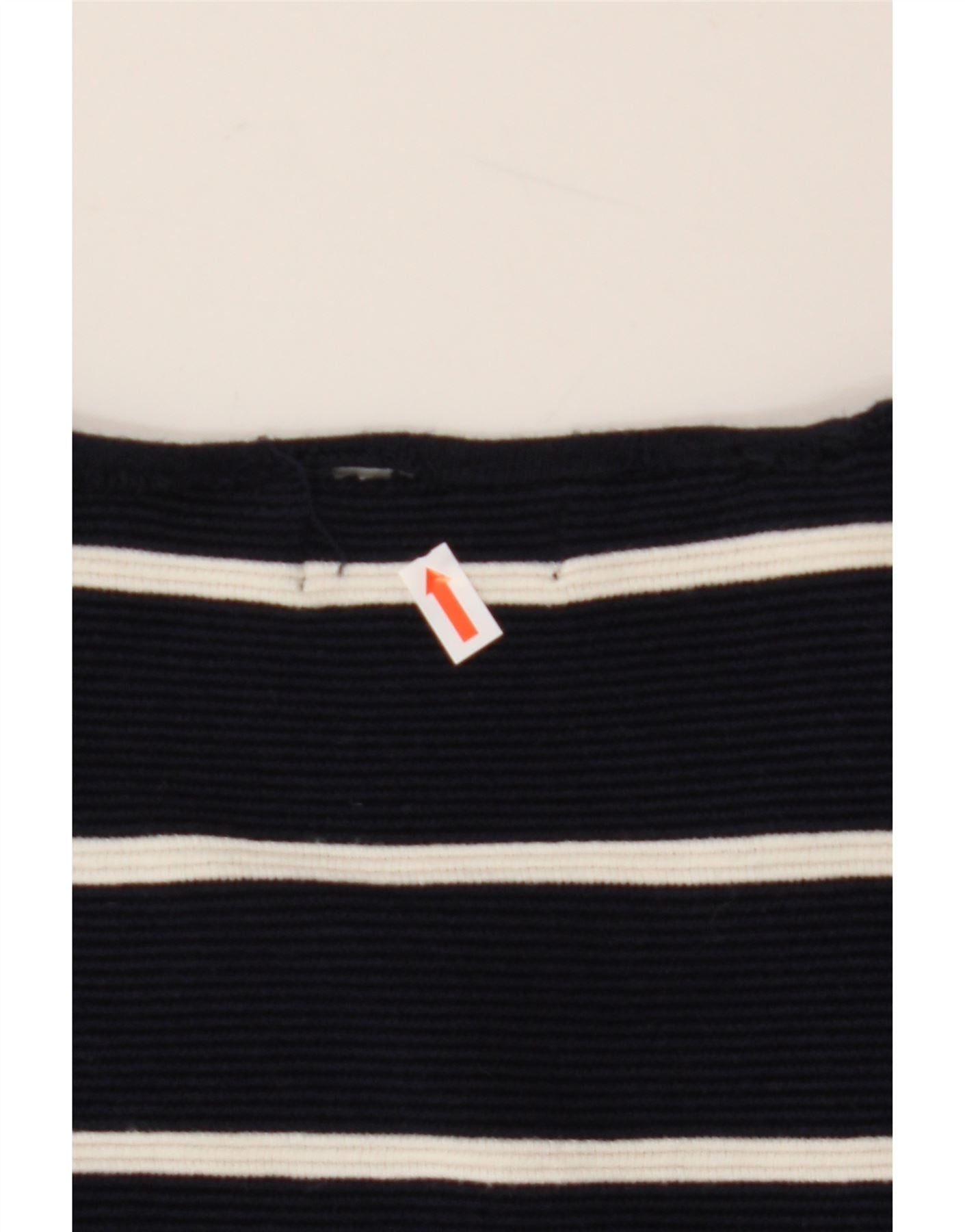 Pulover ZARA pentru bărbați, cu gât roșu, din bumbac cu dungi albastru bleumarin mediu