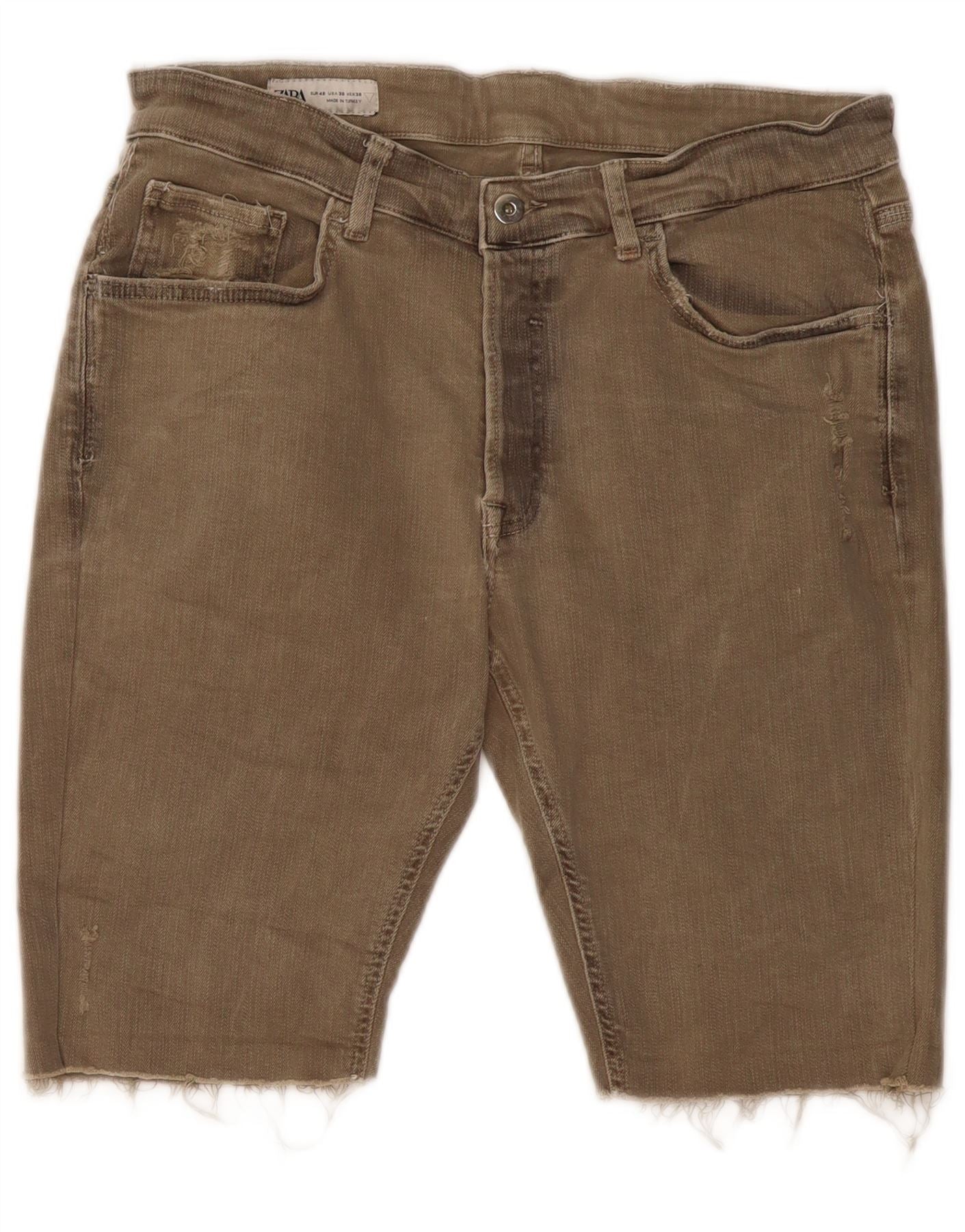 Pantaloni scurți din denim învechit pentru bărbați ZARA EU 46 XL W36 Kaki
