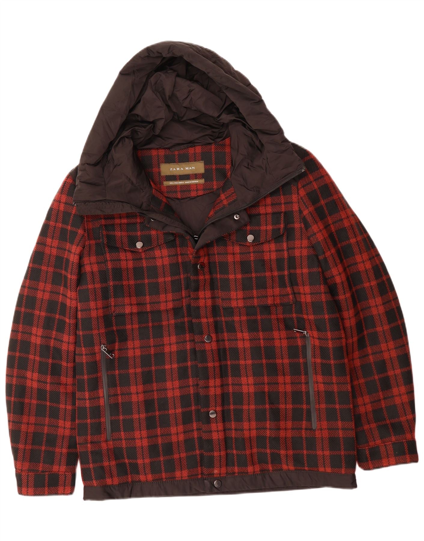 Bomber cu glugă pentru bărbați ZARA UK 40, mare, poliester cu carouri roșii