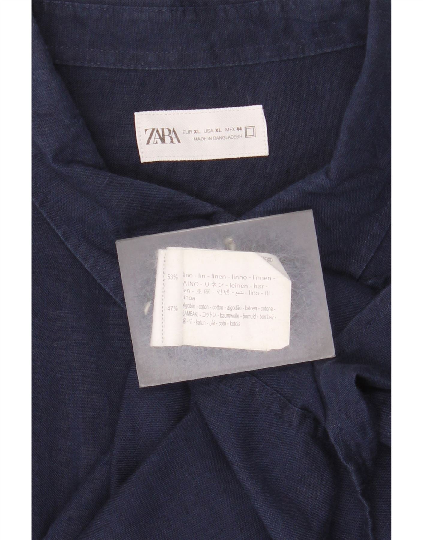 - Descriere AI: Această cămașă pentru bărbați Zara este confecționată dintr-o țesătură ușoară de in și bumbac bleumarin. Are un decolteu clasic cu guler și mâneci lungi. Partea frontală cu nasturi asigură un finisaj îngrijit. Un singur buzunar la piept adaugă detalii practice. Potrivirea obișnuită oferă o purtare confortabilă. Nasturii de culoare deschisă completează aspectul rafinat. Această piesă versatilă este perfectă pentru ocaziile casual inteligente.