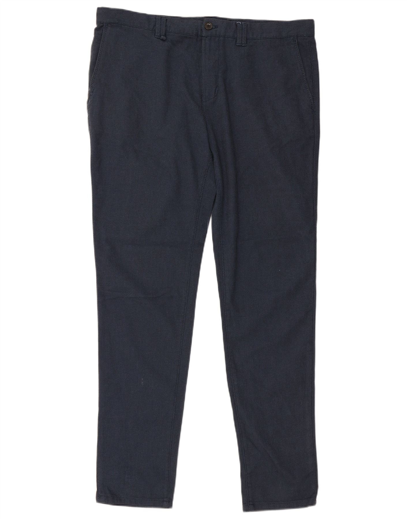 Pantaloni chino slim pentru bărbați ZARA EU 46 XL W36 L32 bleumarin bumbac cu pete