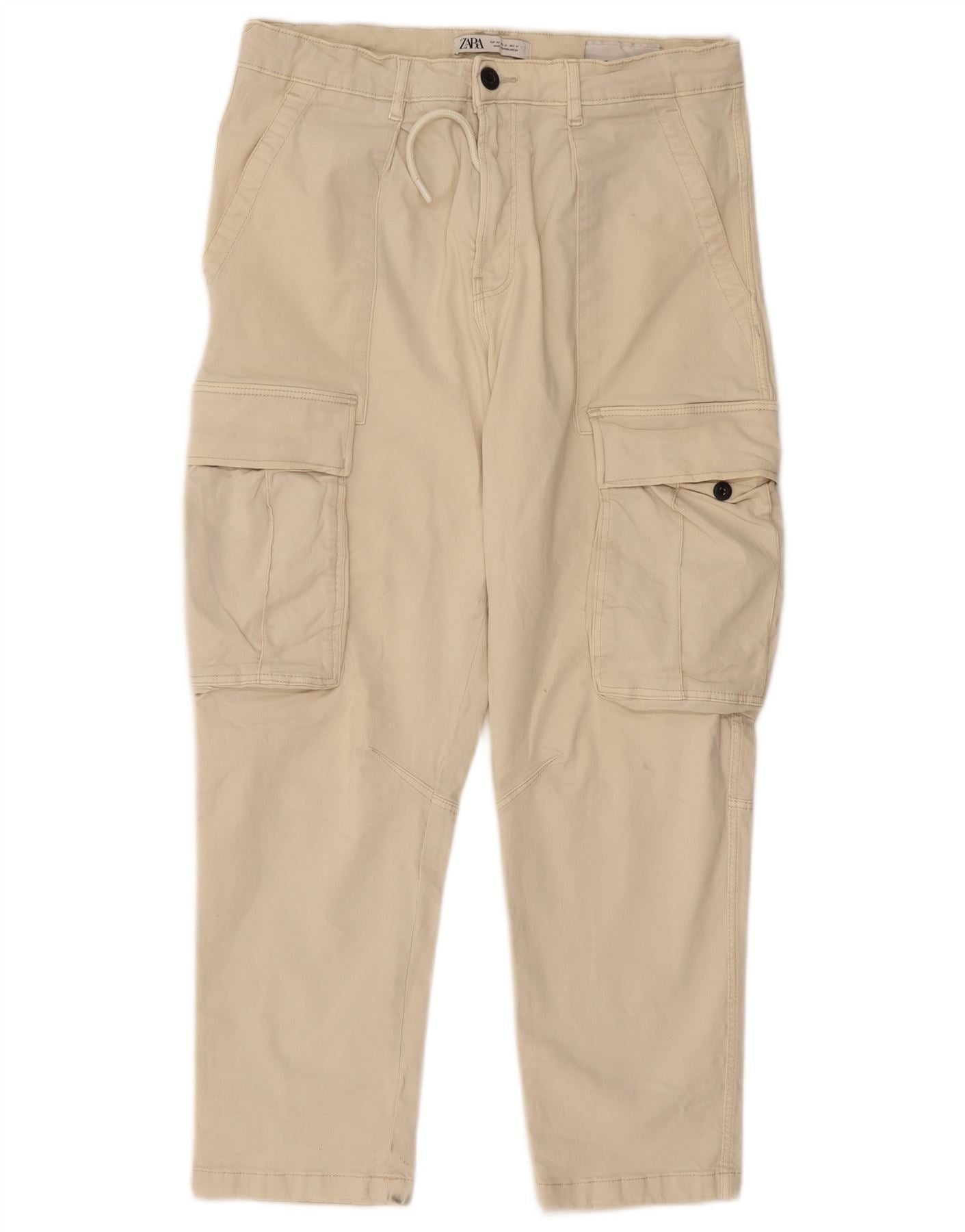 ZARA Pantaloni Cargo Drepți Bărbați EU 40 Mediu L31 L27 Bej Bumbac