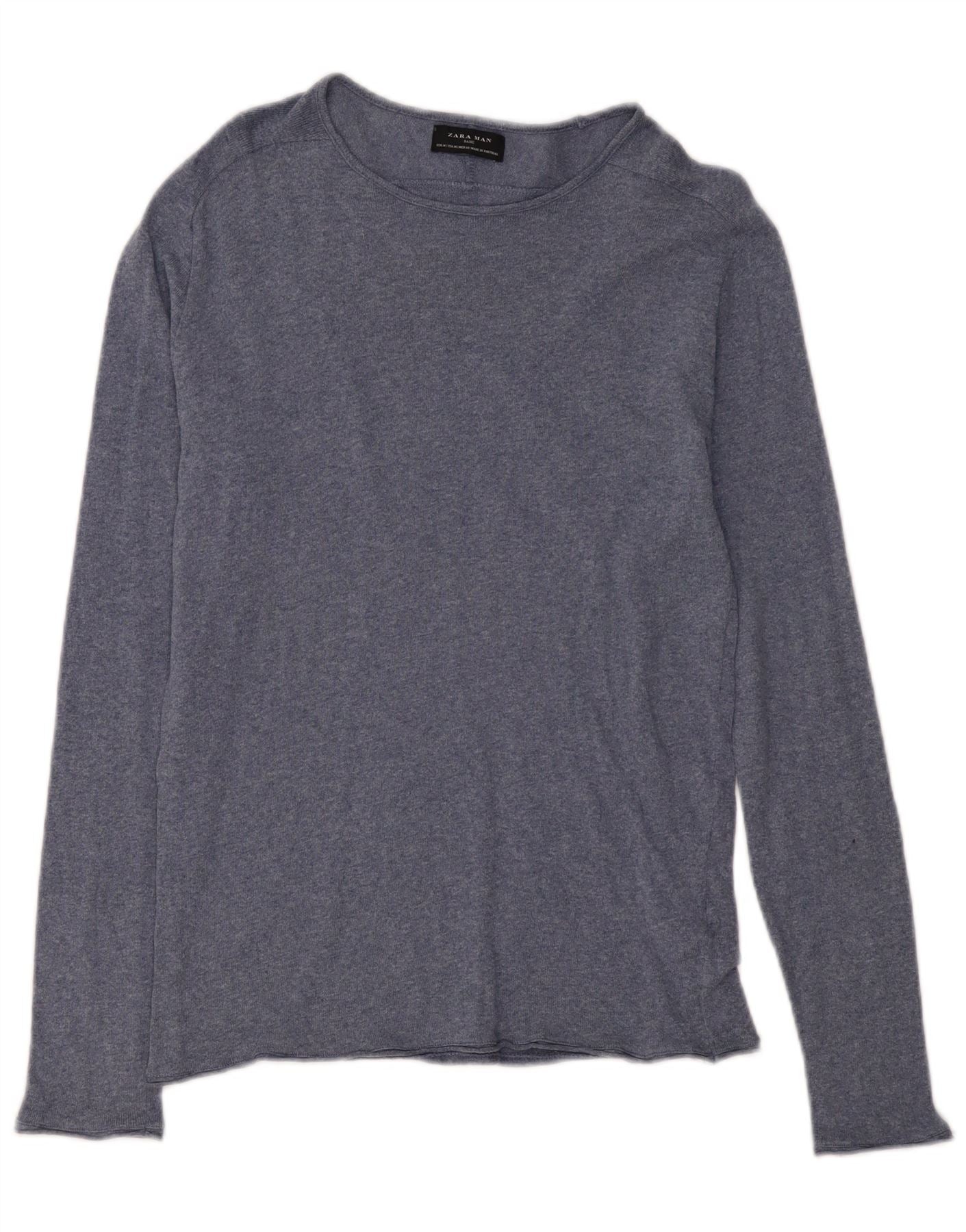 Top pentru bărbați ZARA cu mânecă lungă, albastru mediu, bumbac