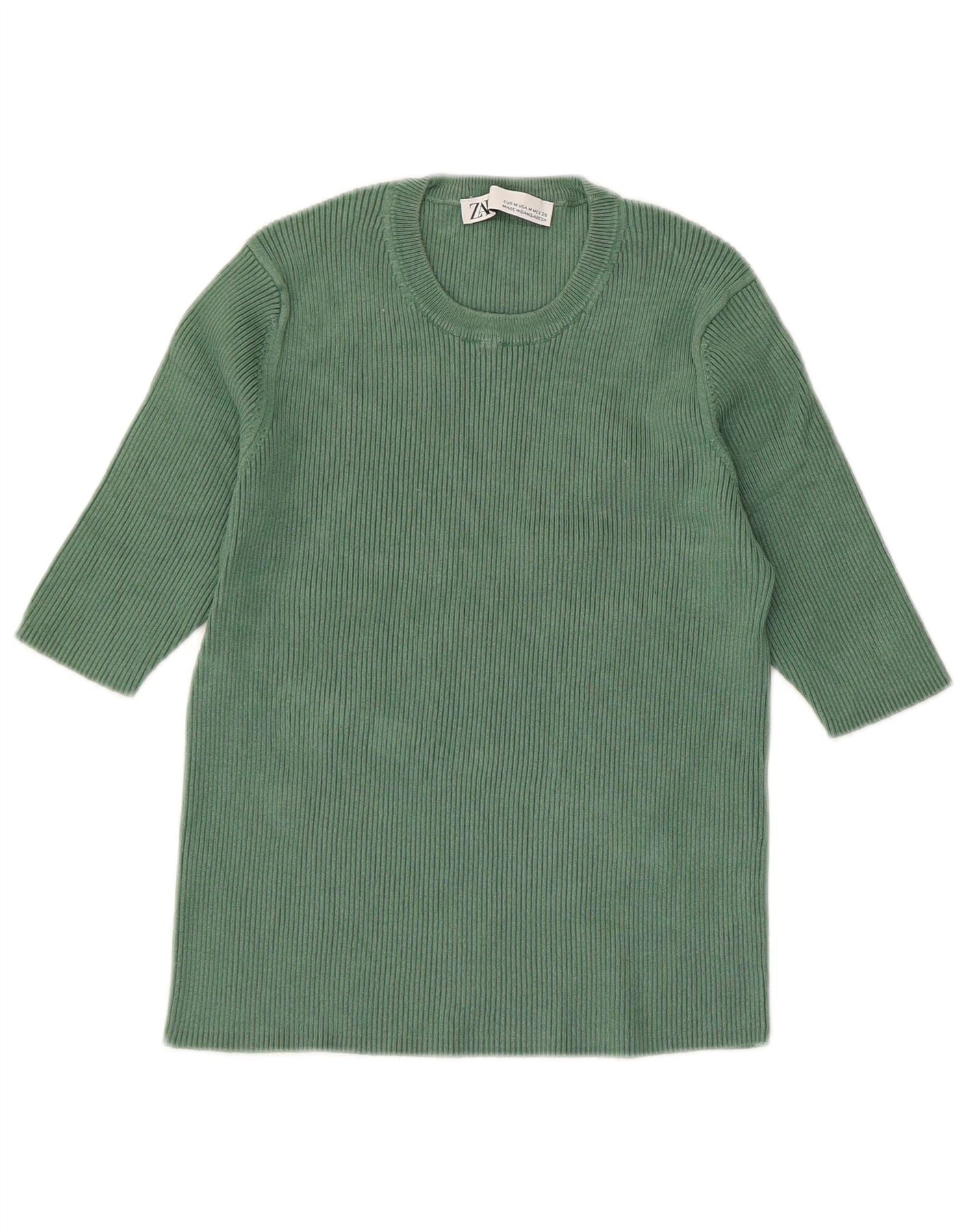 Pulover pentru femeie Zara, cu mânecă jumătate, cu decolteu, viscoză verde medie UK 14