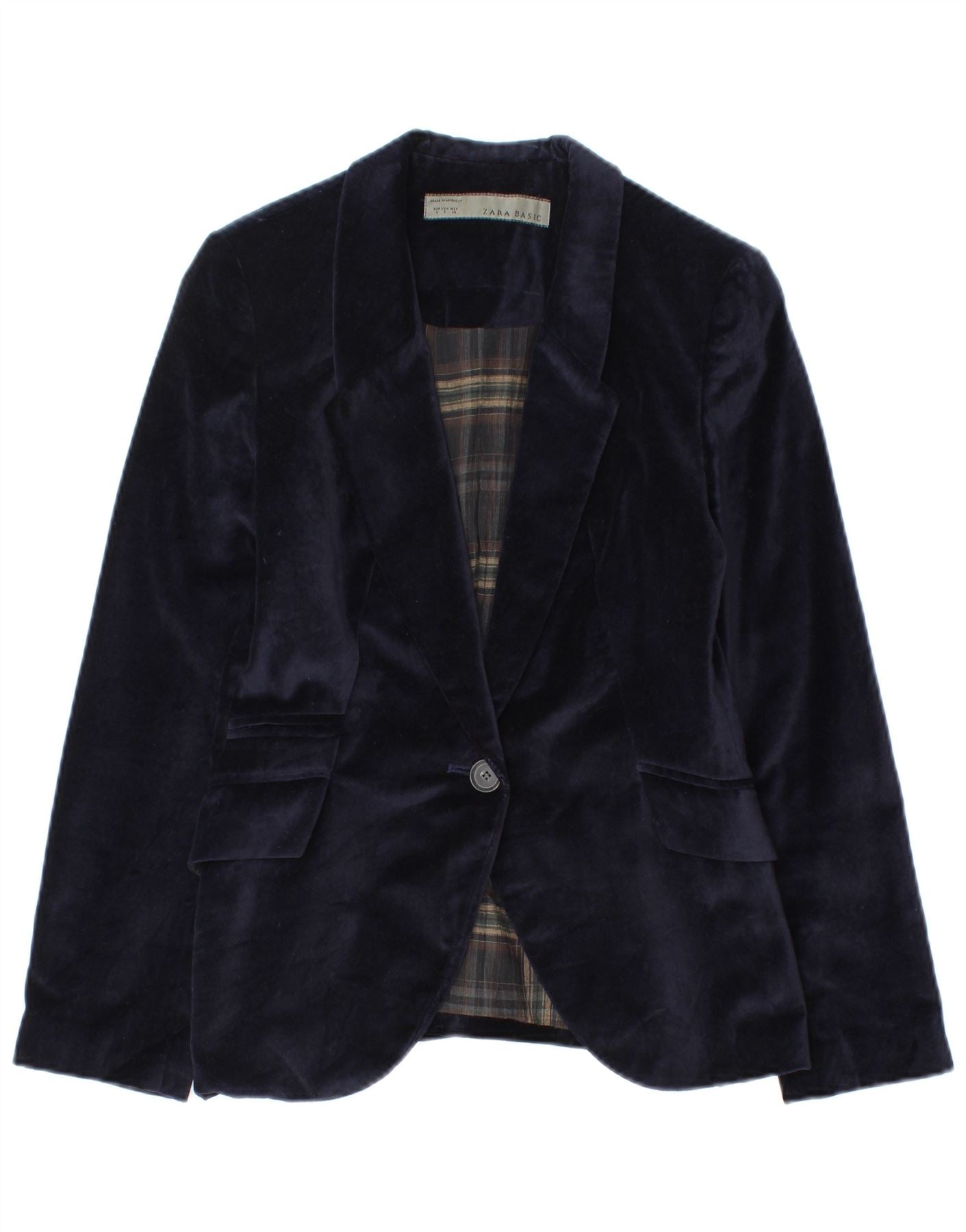 Blazer pentru femei Zara, cu 1 nasture, din catifea UK 8, bumbac, albastru bleumarin