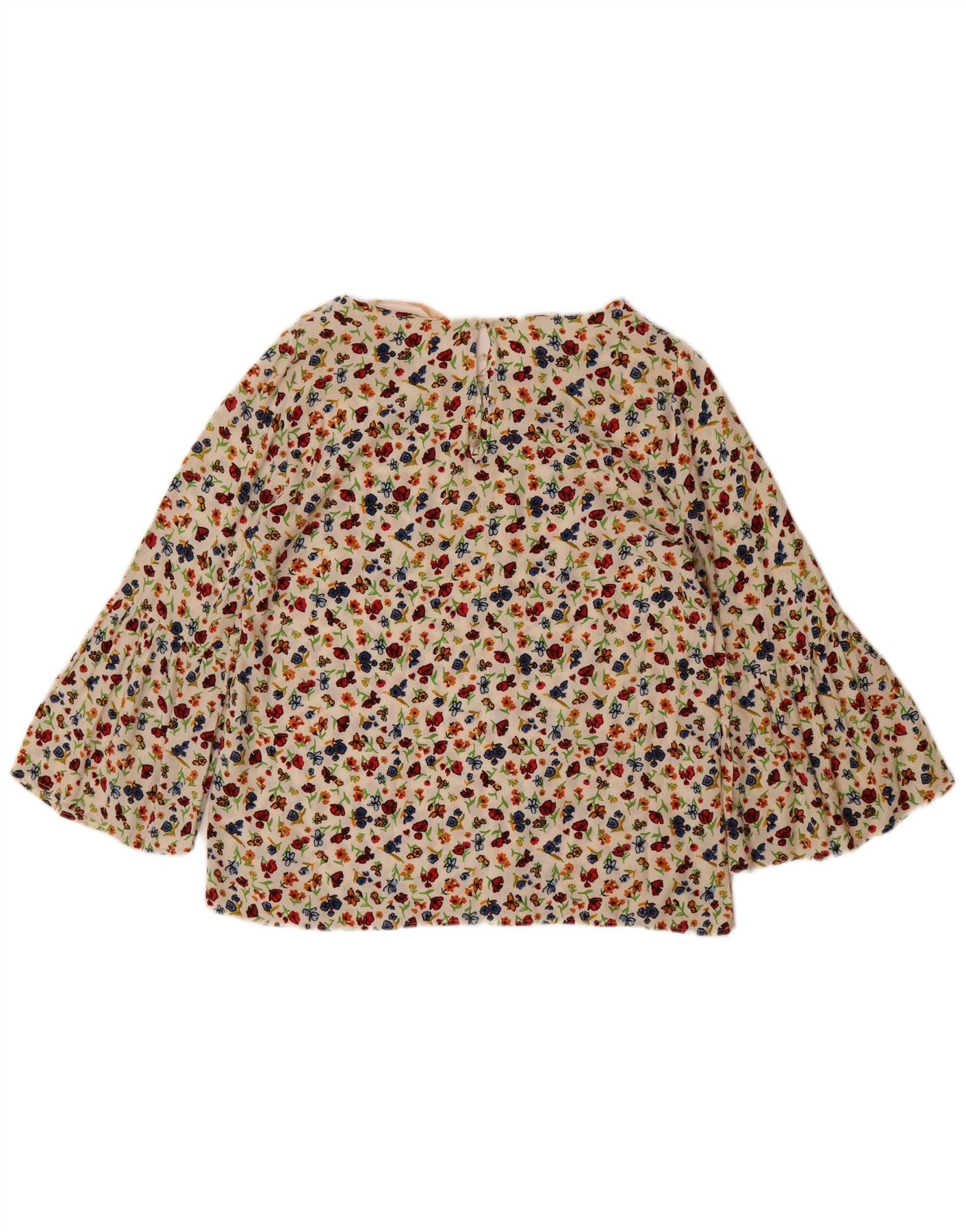 Bluză ZARA pentru femei, cu mâneci 3/4, UK 10, mic din viscoză florală albă