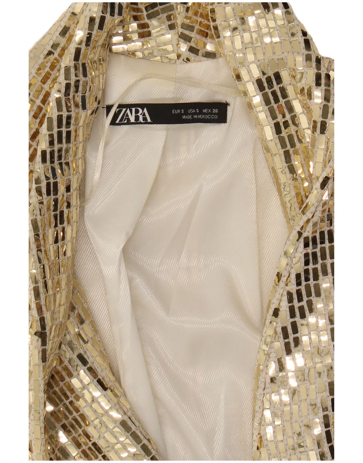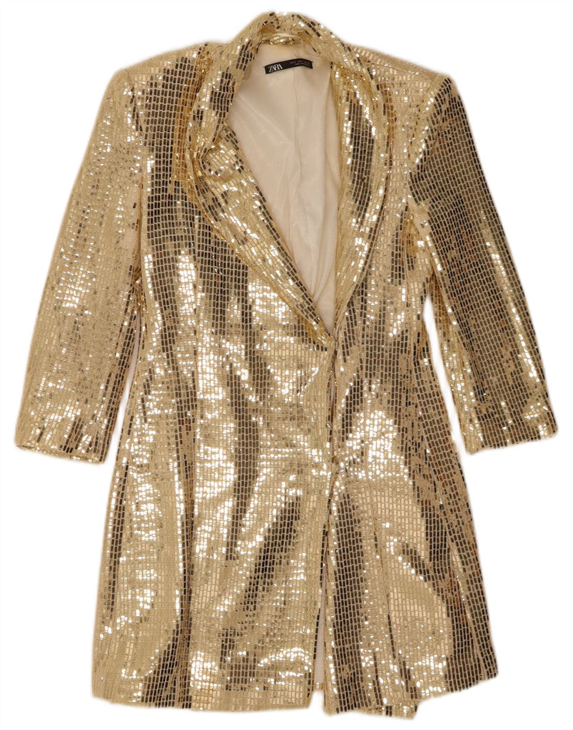 ZARA Womens 3/4 Sleeve Longline Blazer Jacket UK 10 Small Gold Nylon