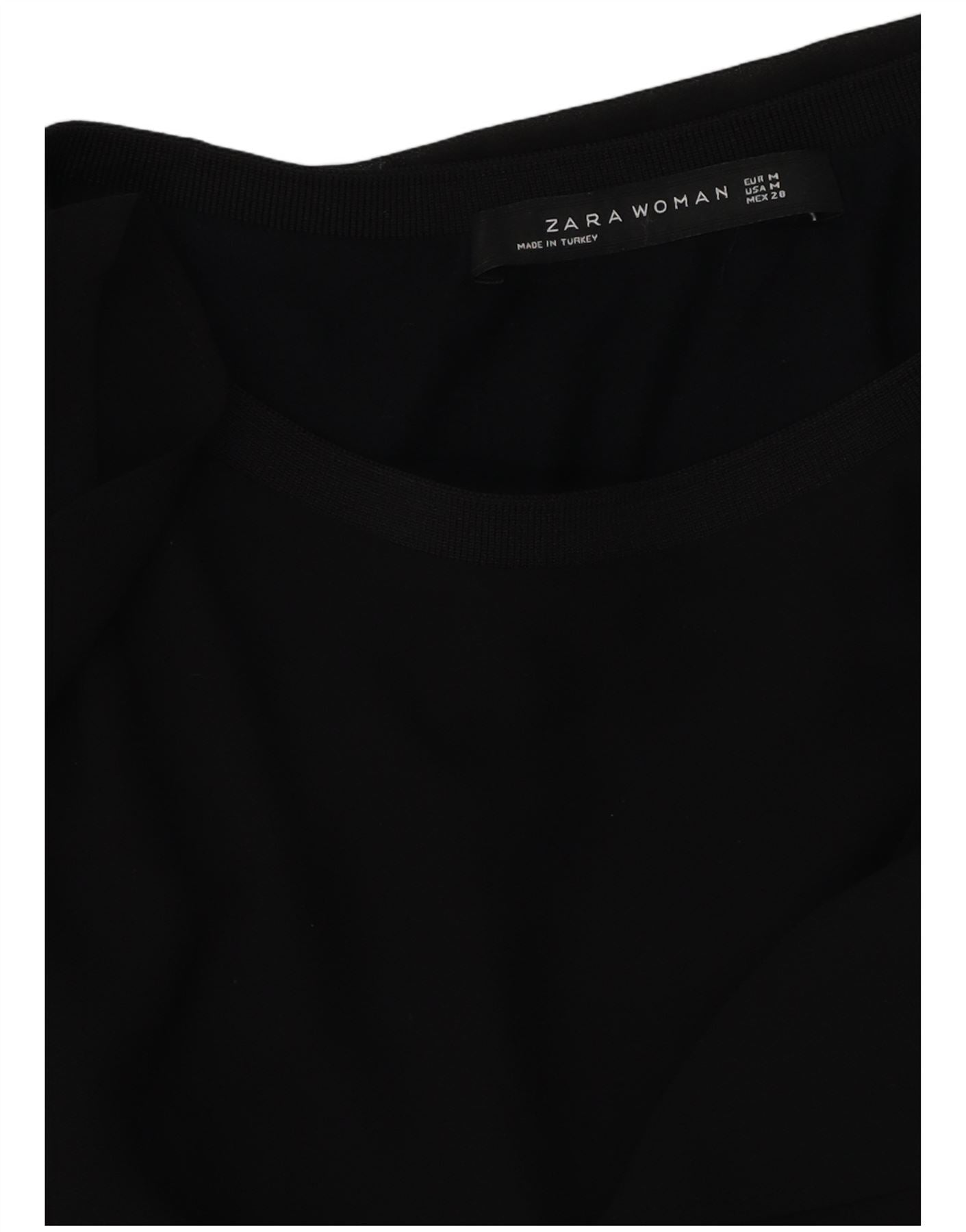 - Descriere AI: Acest top de bluză pentru femei Zara este confecționat din șifon ușor negru, oferind o textură delicată și fluidă. Are un gât rotund clasic și o potrivire regulată confortabilă. Stilul pulover asigură ușurința la purtare. Mânecile scurte sunt îmbunătățite cu detalii elegante cu volane, adăugând o notă modernă și feminină. Accentul de volan creează interes vizual.