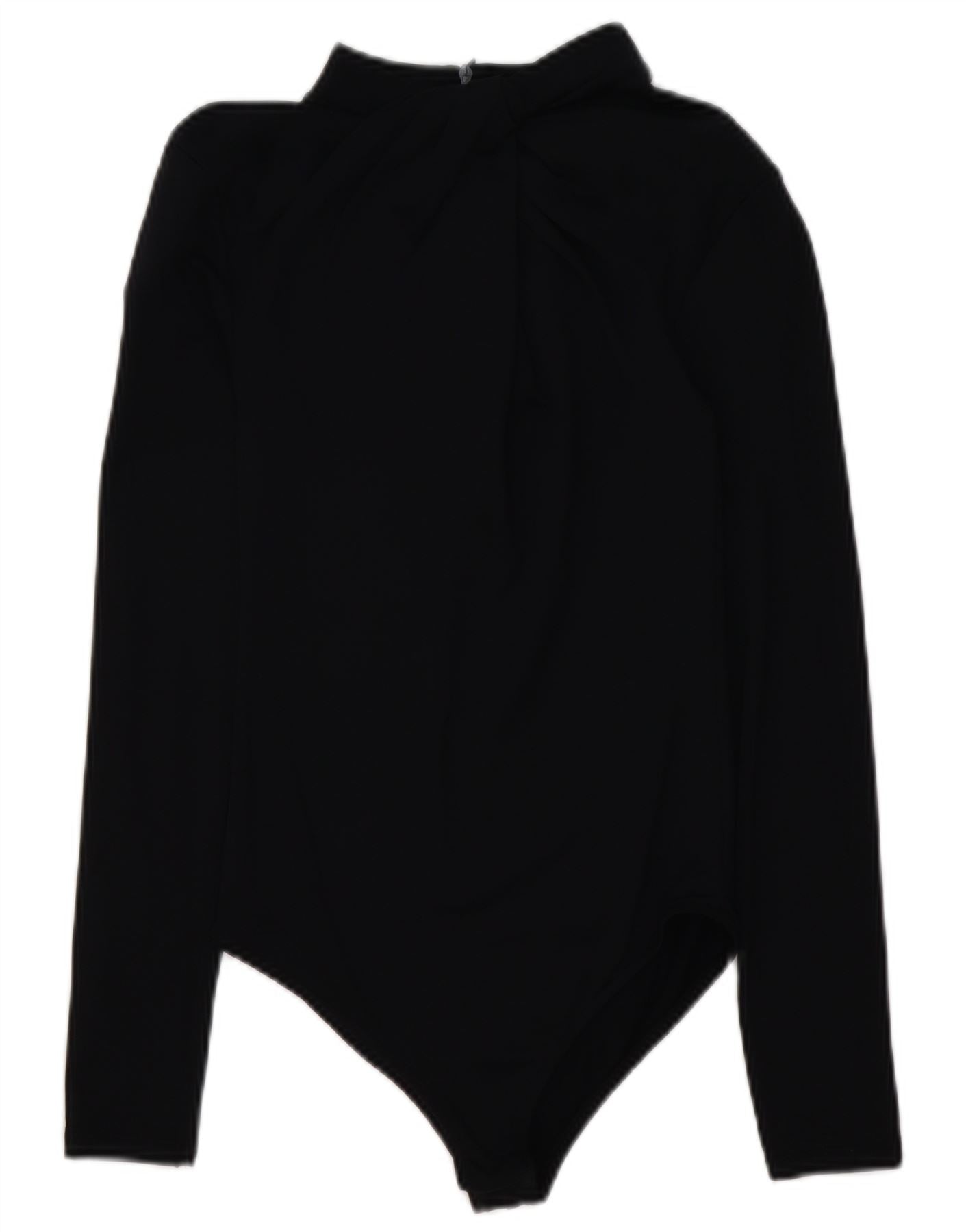 - AI Description: This Zara women's long sleeve top is crafted from a sleek black woven fabric. It features a high neck and a modern slim fit silhouette, offering a contemporary look. Long sleeves complete the design. An asymmetric detail adds distinctive flair, while a zip closure provides a clean, refined finish. This piece embodies modern style with its tailored cut.