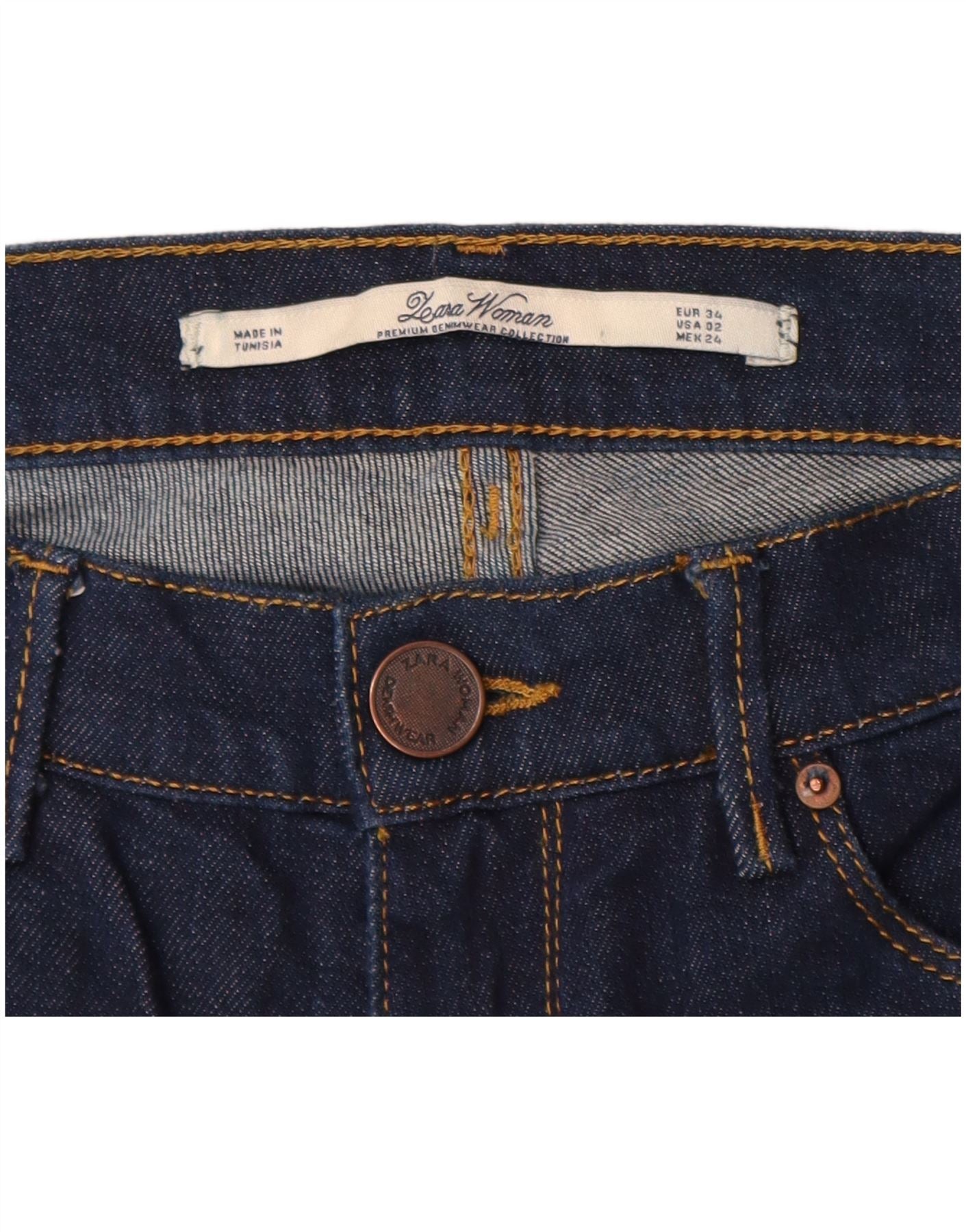 Blugi Bootcut ZARA pentru femei EU 34 2XS L24 L34 Bumbac bleumarin