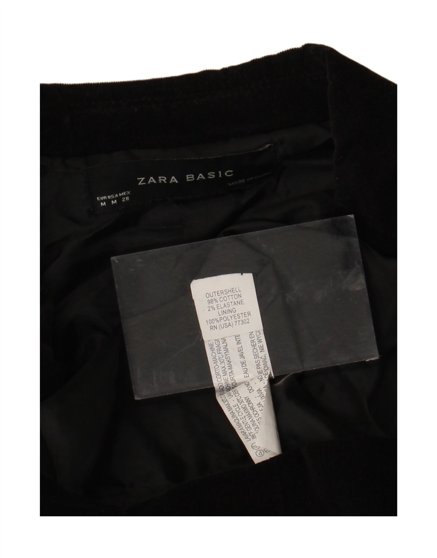 ZARA Womens Corduroy 1 Button Blazer Jacket UK 12 Medium Black Cotton