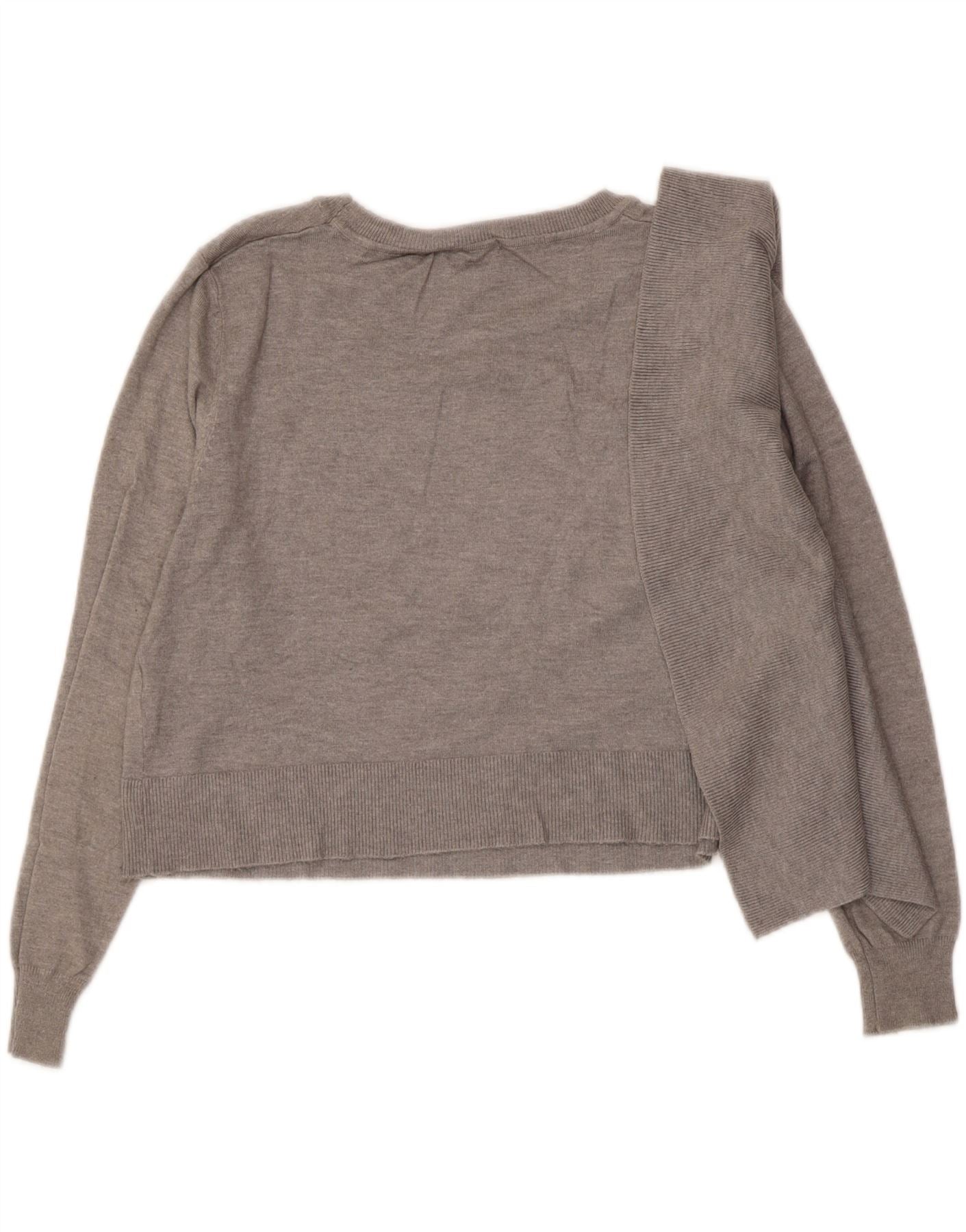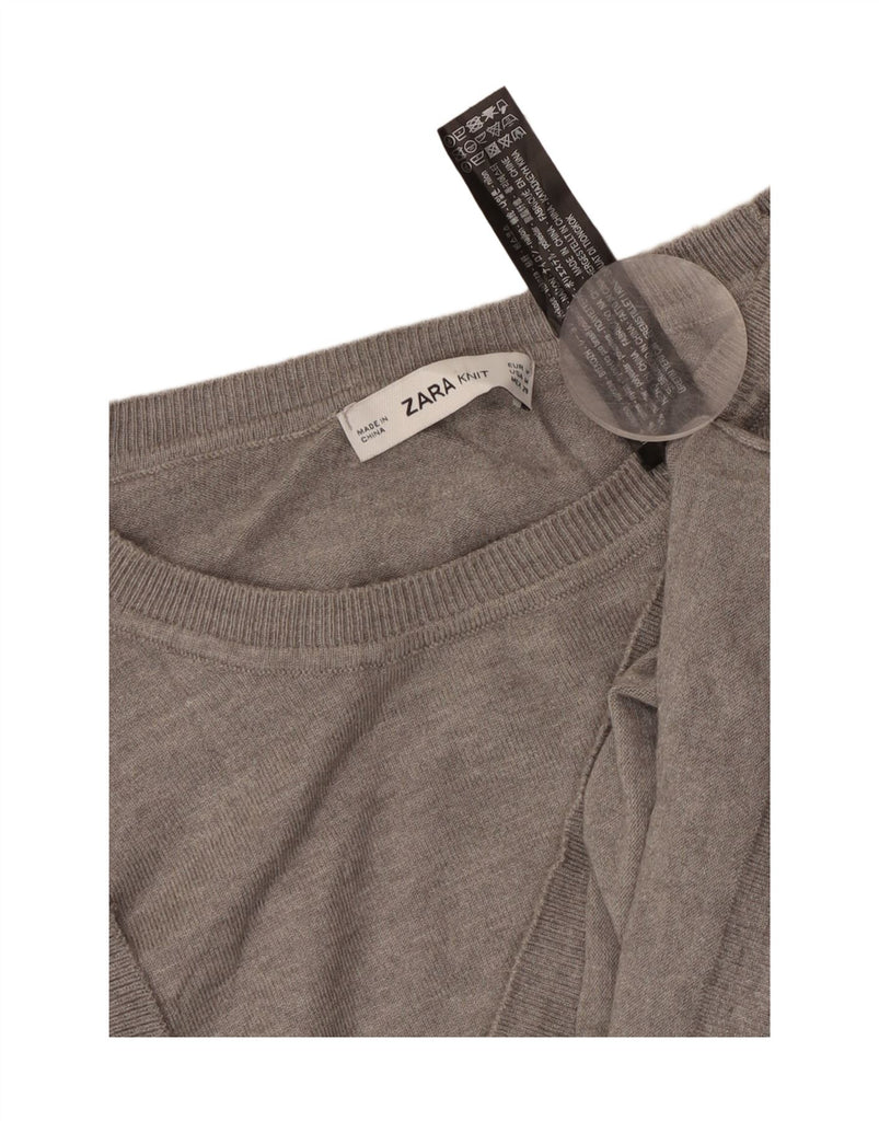ZARA Womens Crop Boat Neck Jumper Sweater UK 14 Medium Grey Viscose