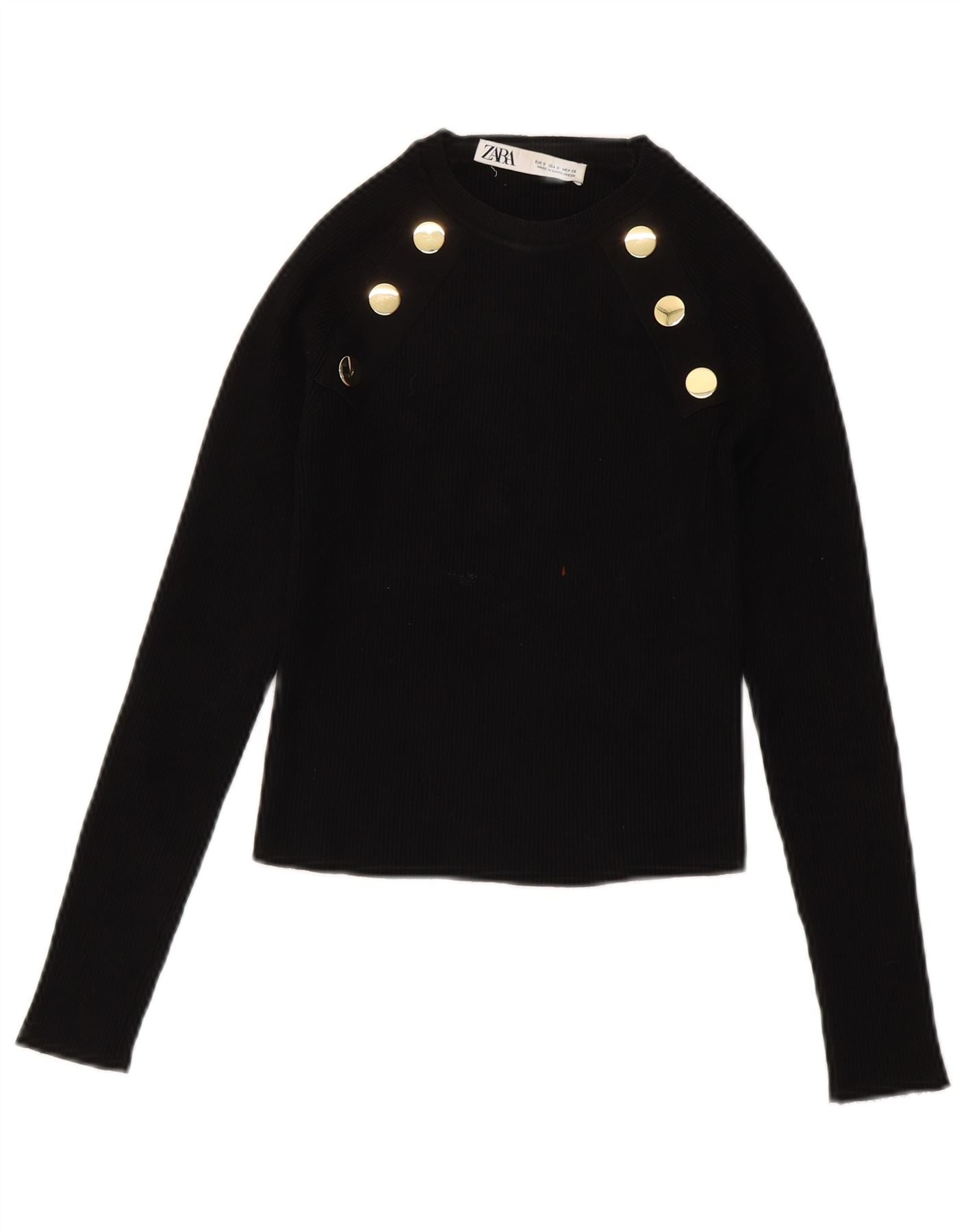 Pulover de damă ZARA cu gât de barcă, mic, negru, viscoză