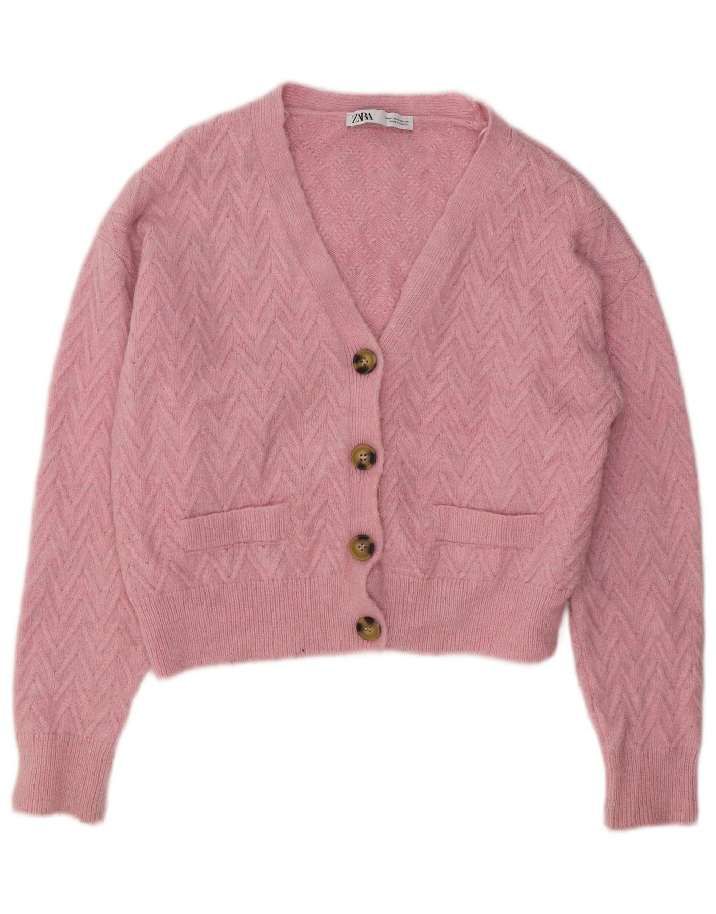 Pulover cardigan pentru femei ZARA UK 14 Medium Pink Chevron Acrylic