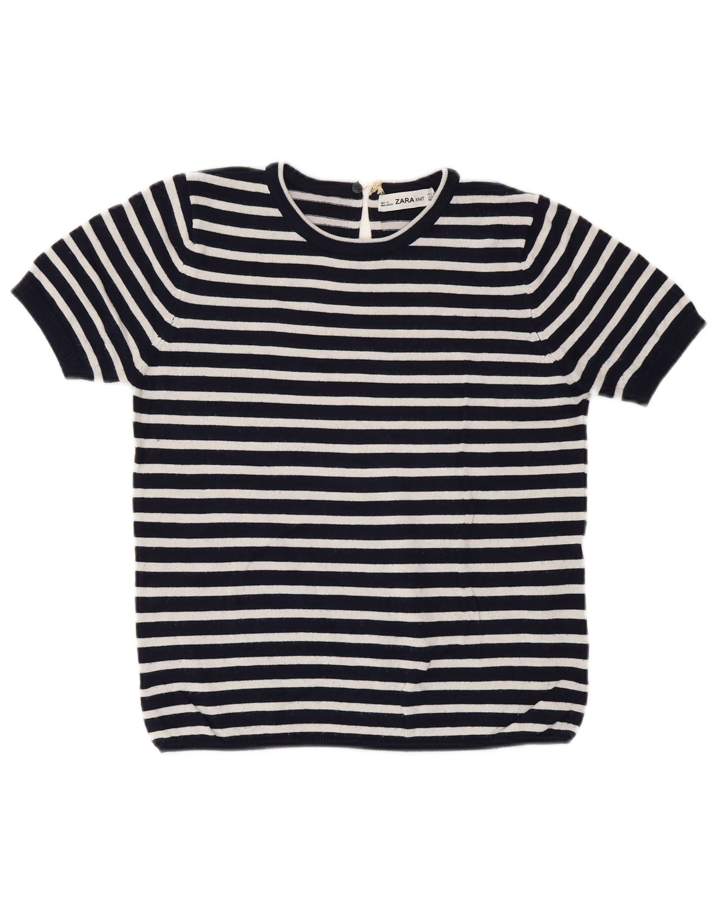 Pulover de damă ZARA Crop Crew Gate UK 10 Mic bleumarin cu dungi