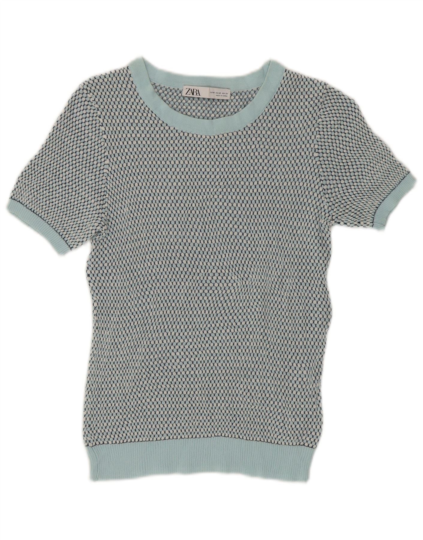 Pulover cu decolteu scurt pentru femei Zara UK 12 Medium Green Spotted
