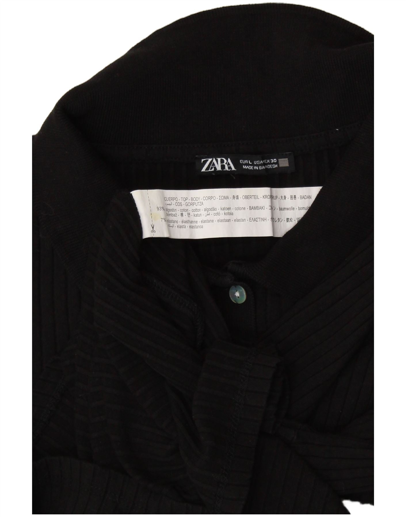 Cămașă polo cu mânecă lungă pentru femei ZARA UK 14, mare, negru, bumbac