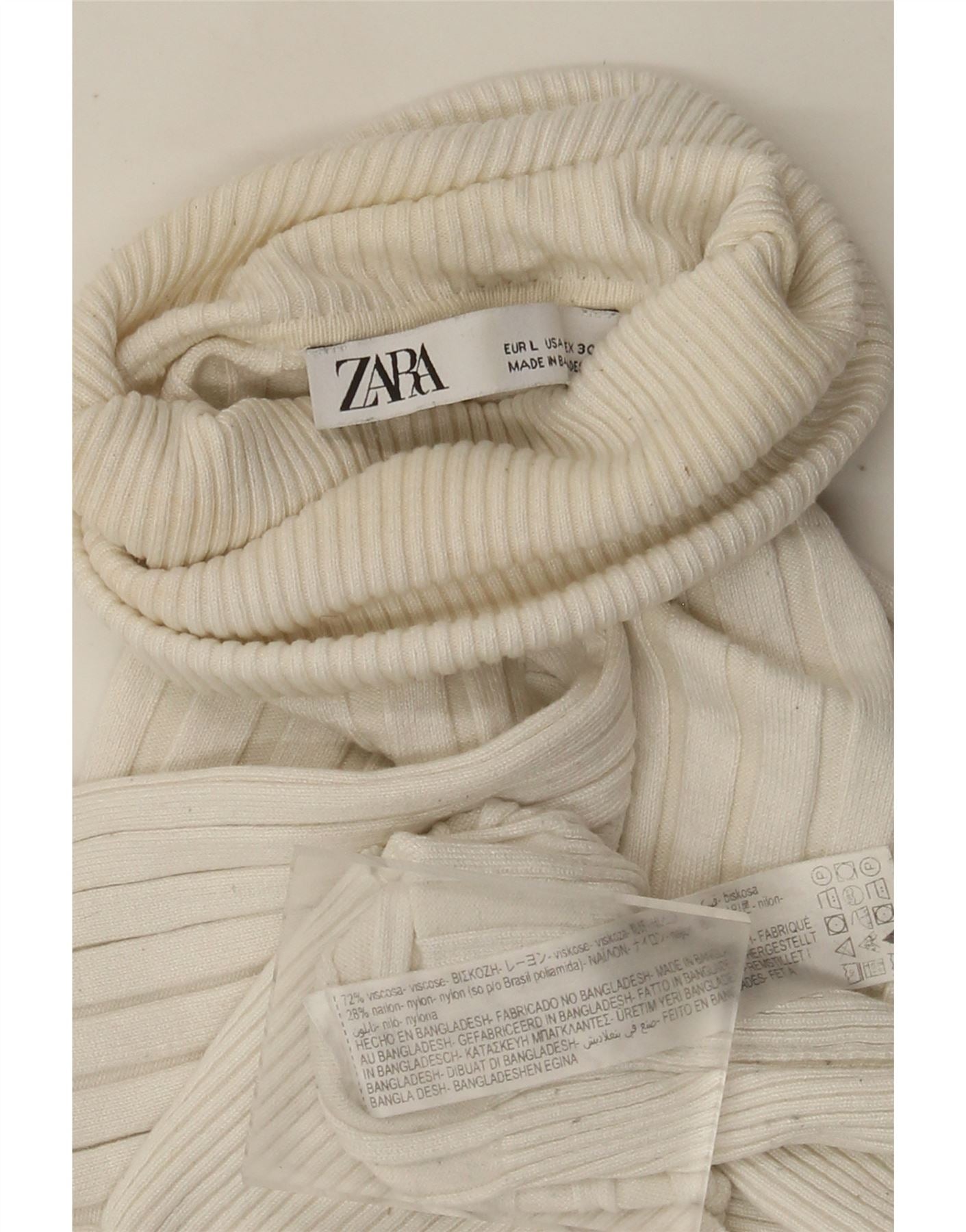 Pulover de damă Zara cu gât rulat, mare, viscoză, albă, mare