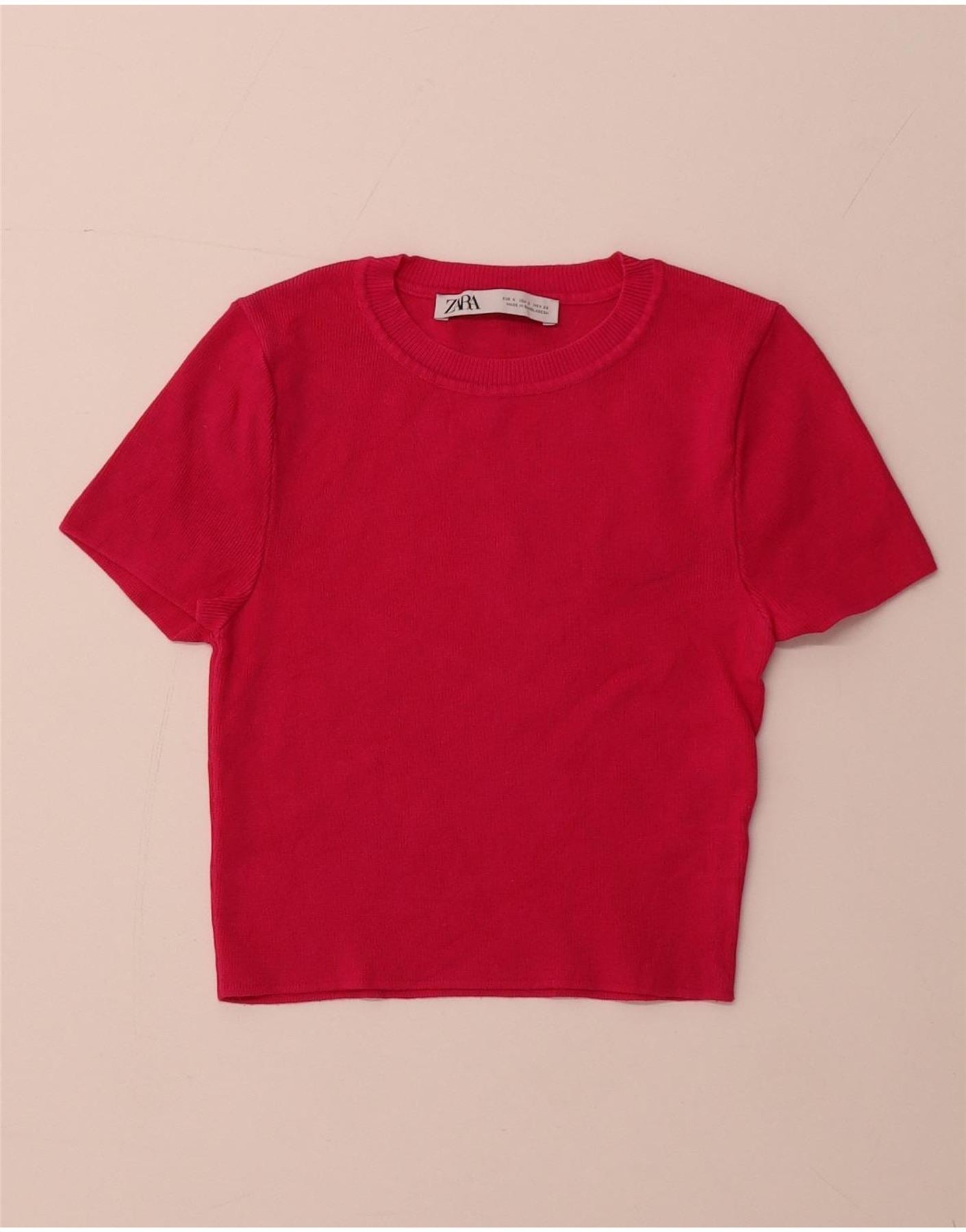 Pulover ZARA pentru damă, cu mânecă scurtă, cu decolteu, mic, roz