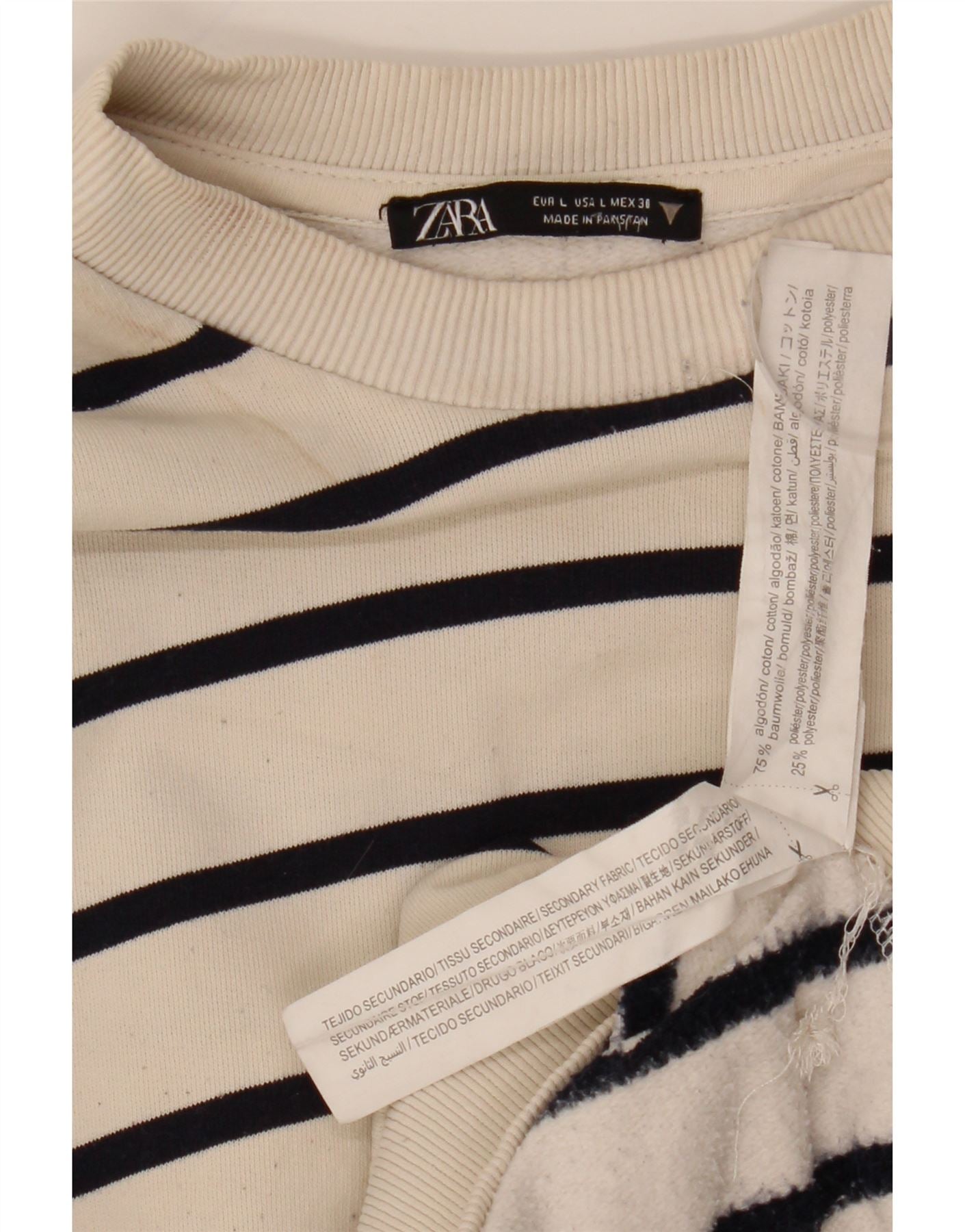 Pulover de hanorac ZARA pentru femei UK 16, mare, cu dungi albe, bumbac
