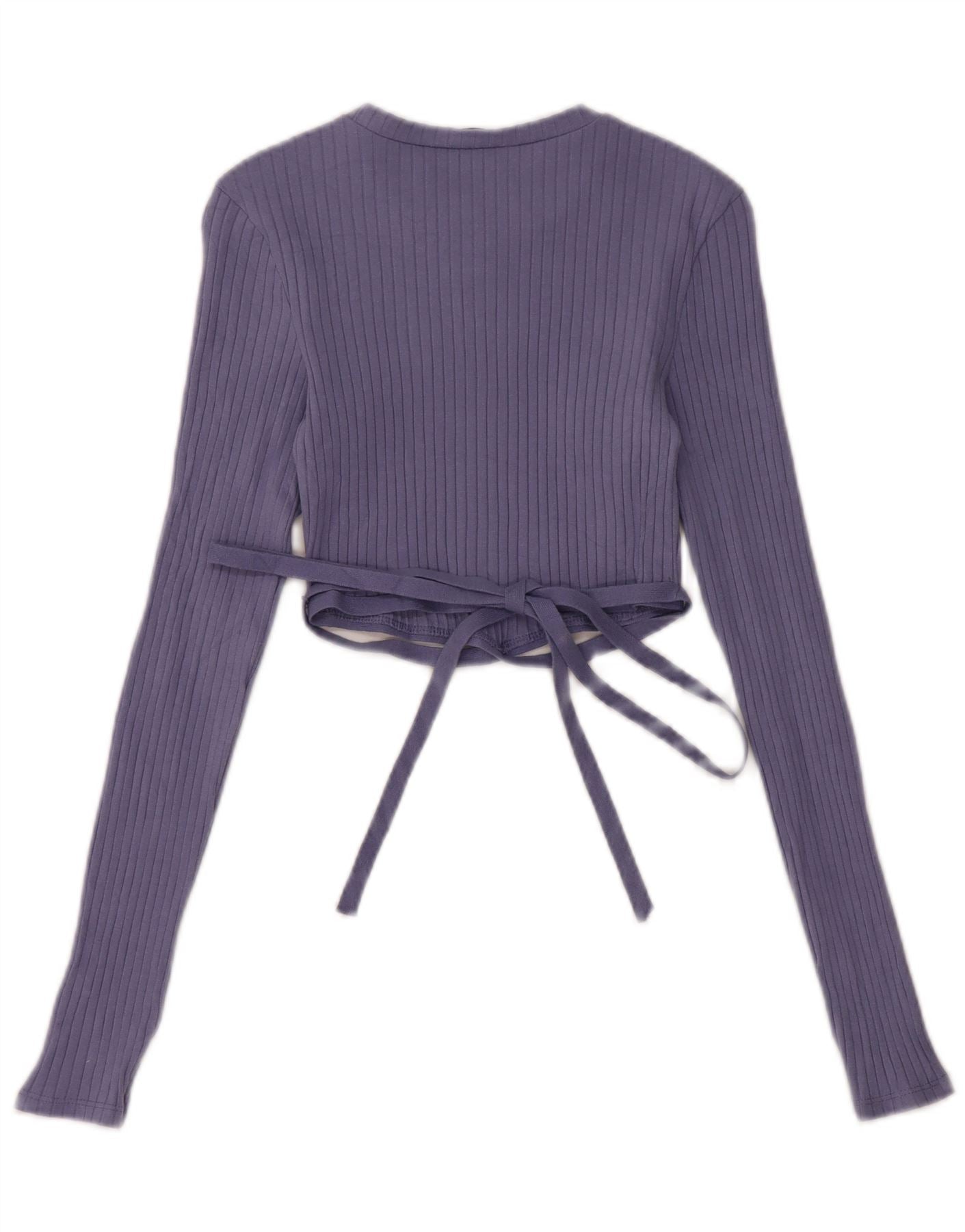 Crop Top pentru femei Zara cu mânecă lungă UK 10 mic, albastru, bumbac