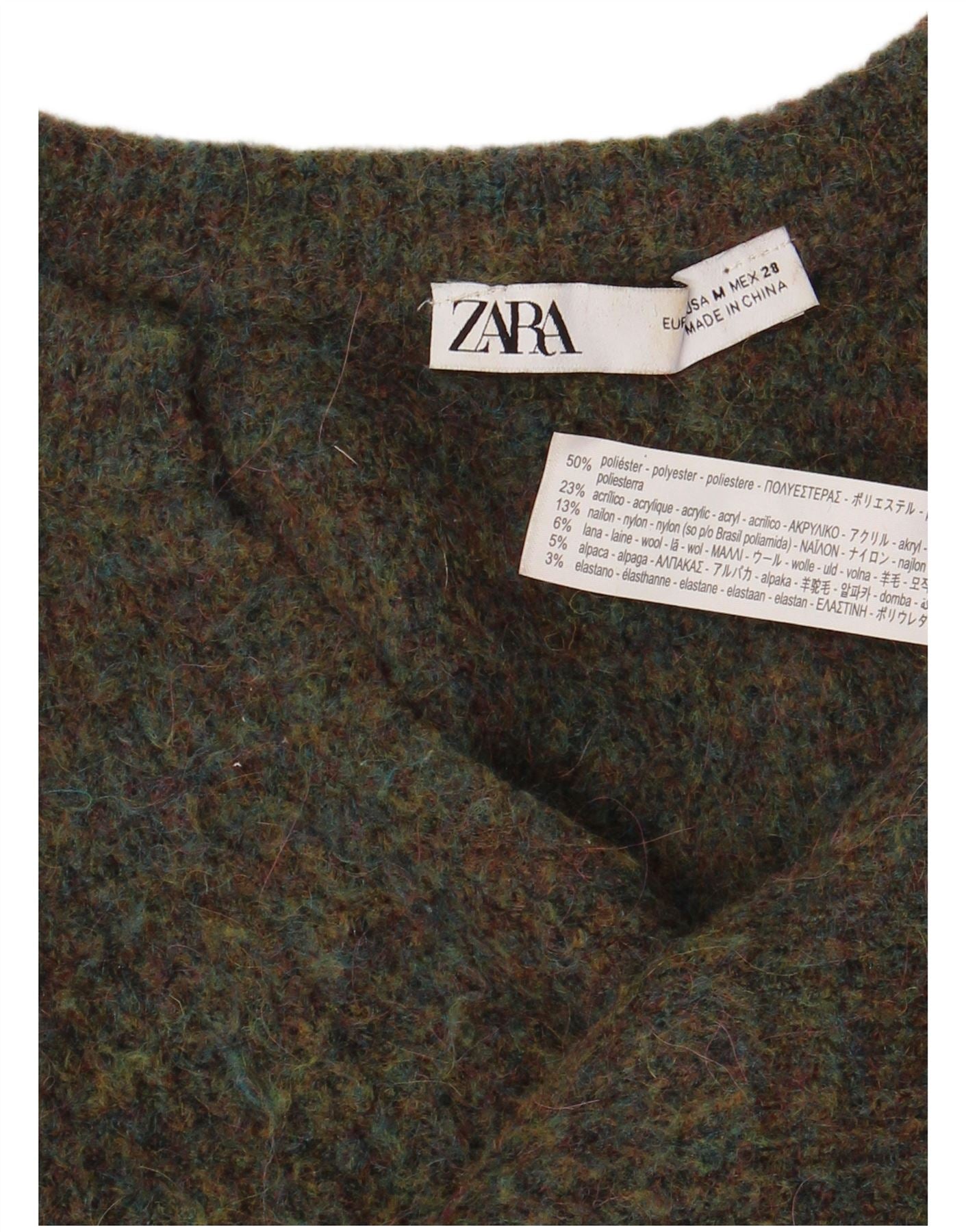 Pulover cu decolteu în V Zara pentru femei UK 14 Medium Khaki Flecked