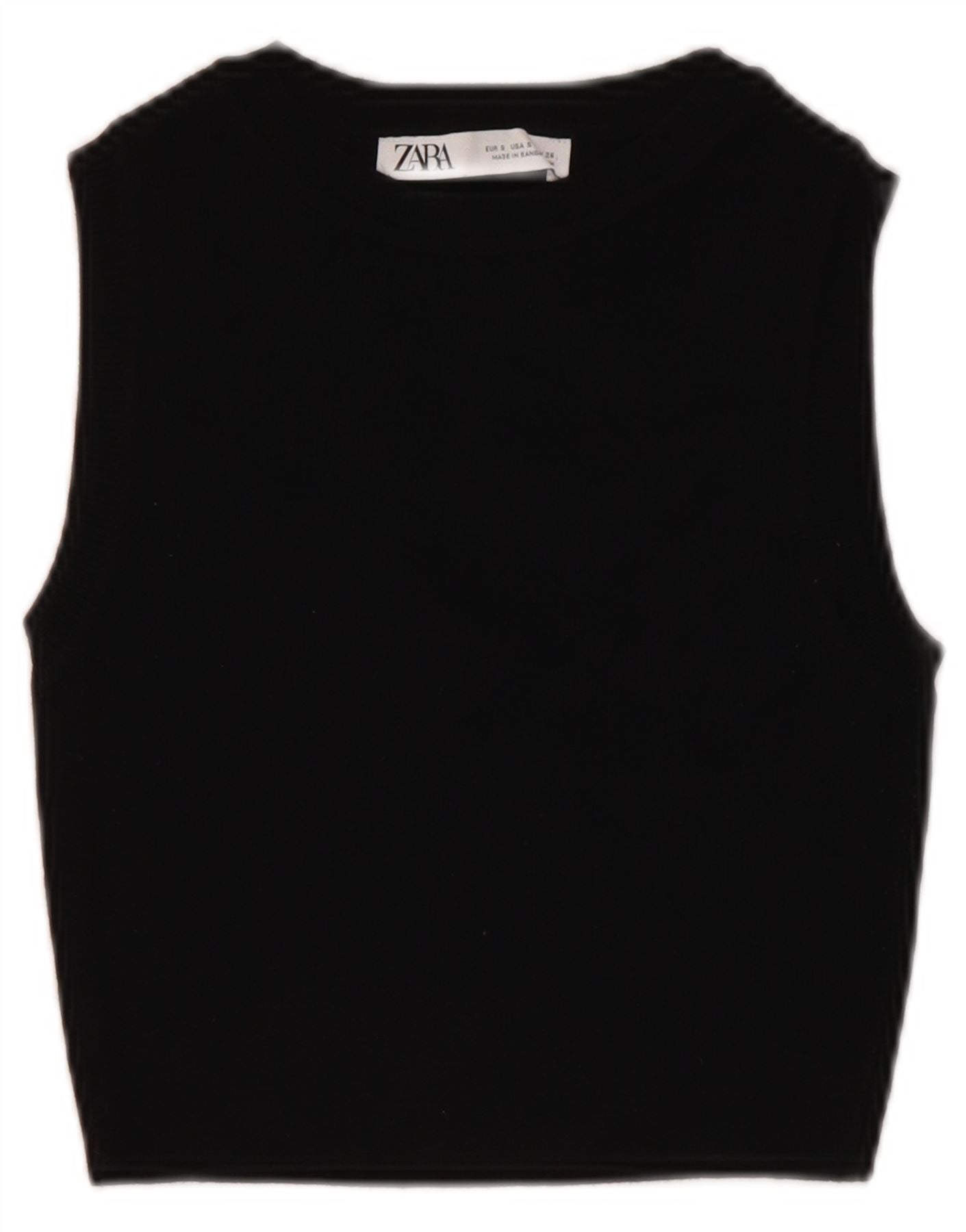 ZARA Crop Vest Tank Top pentru femei UK 8 Small Black Viscose
