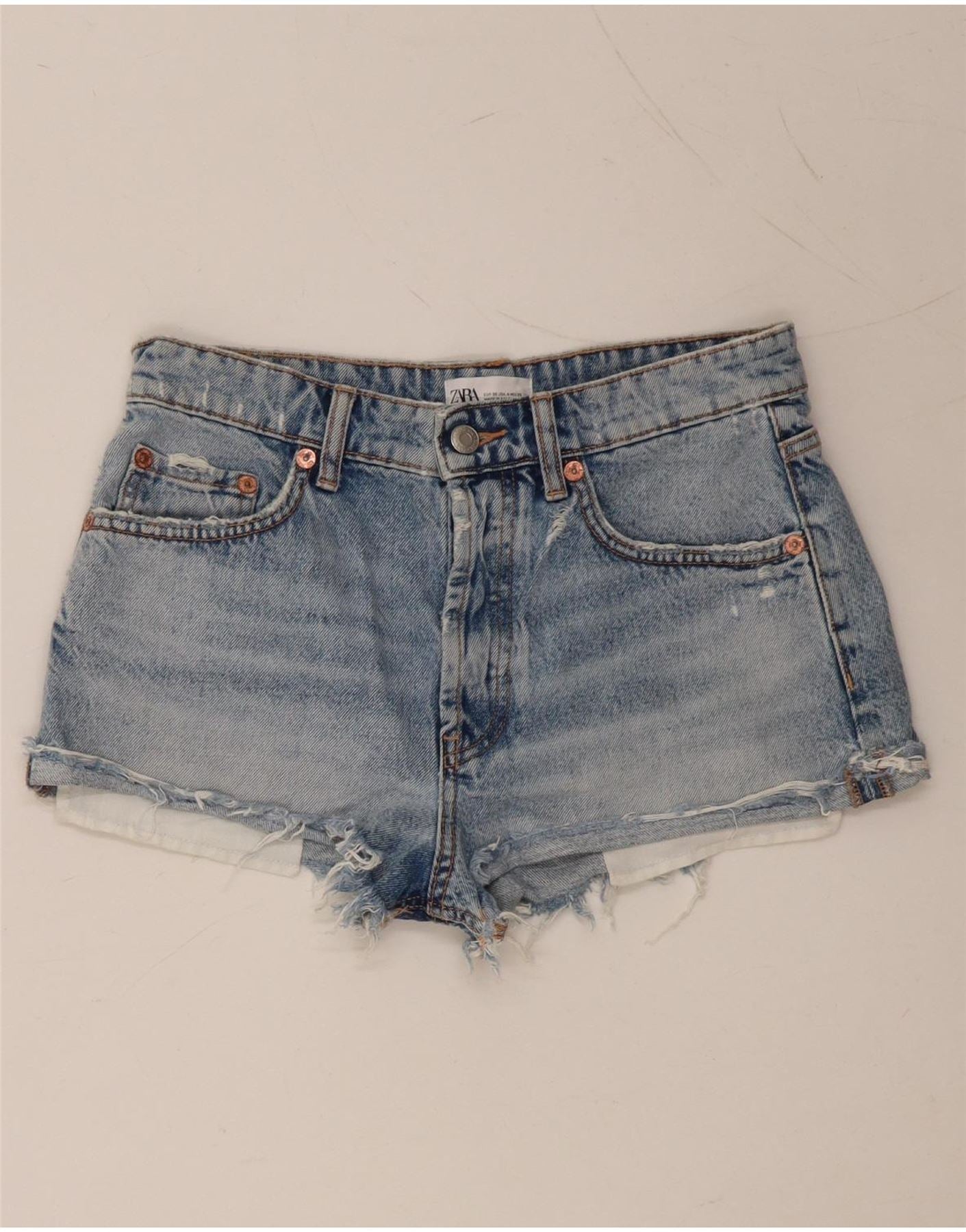 Pantaloni scurți din denim învechit ZARA pentru femei EU 36 XS W26 Bumbac albastru