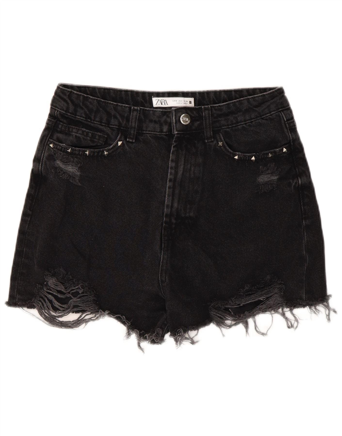 Pantaloni scurți din denim învechit ZARA pentru femei EU 38 Small W28 Negru
