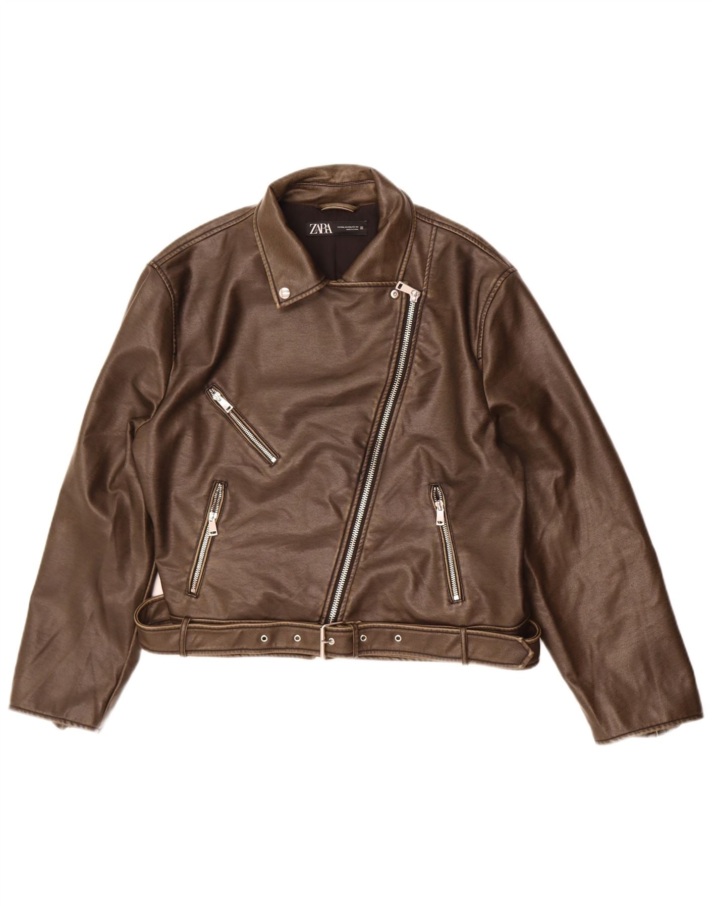 Home > Jachete de piele de epocă > Jachete din piele vintage maro > Jachetă motociclist din piele artificială pentru femei Zara UK 20 2XL maro poliuretan