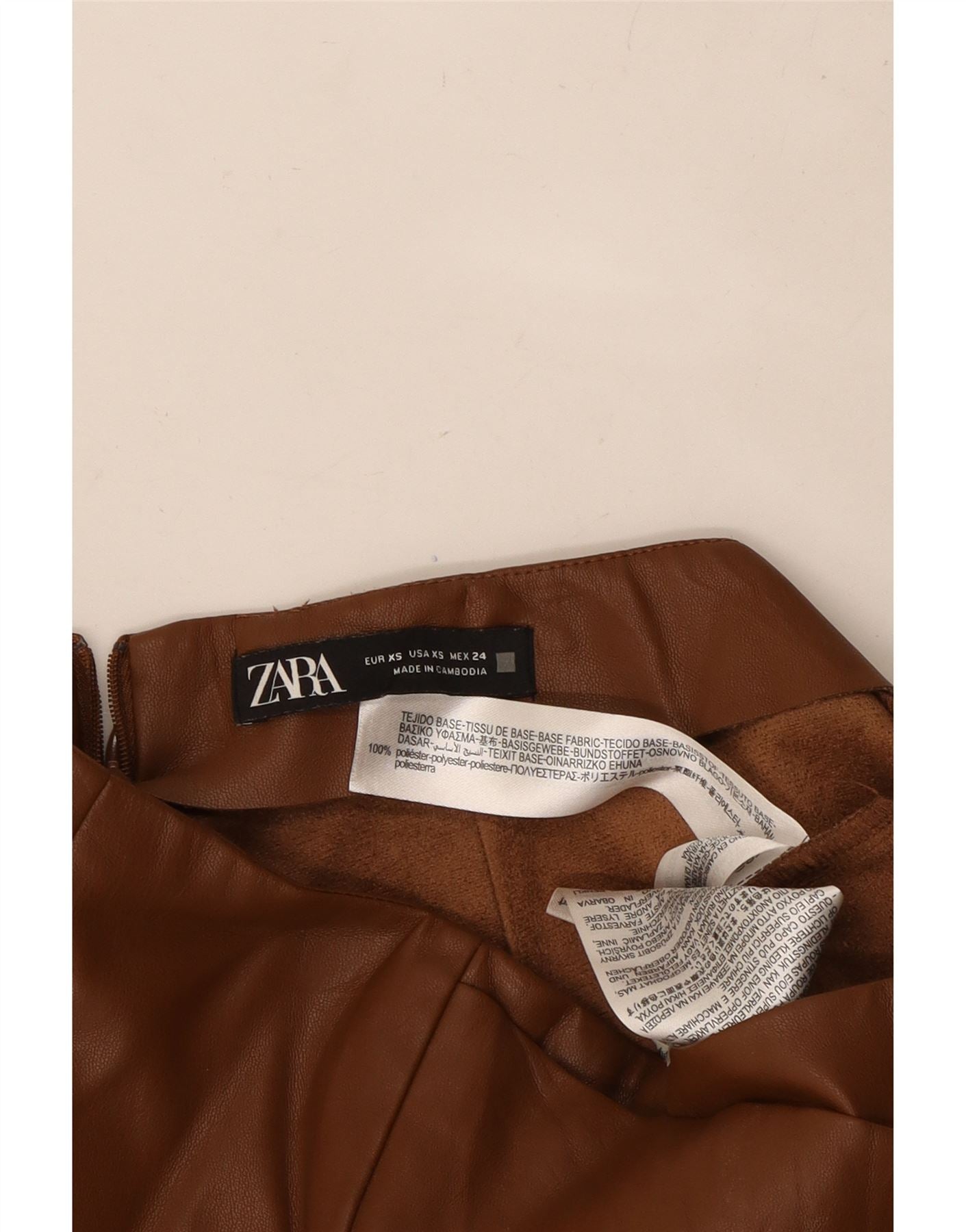 Pantaloni scurți din piele artificială ZARA XS W25 maro poliester