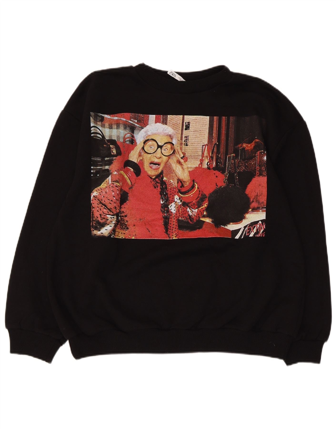 Pulover cu grafic pentru femei ZARA UK 14 Bumbac mediu negru
