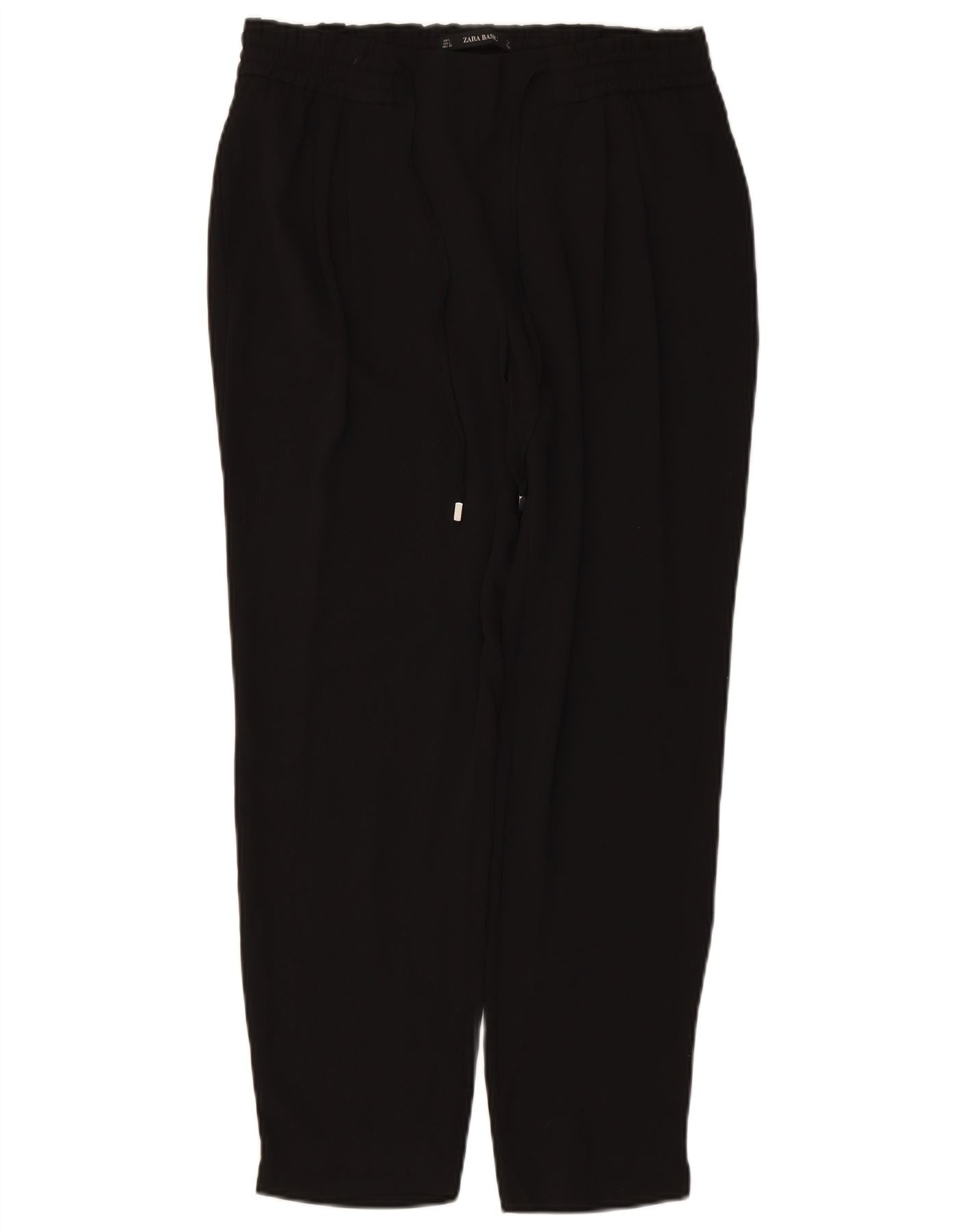Pantaloni tăiați conici pentru femei cu talie înaltă ZARA UK 16 Large W34 L27 Negru