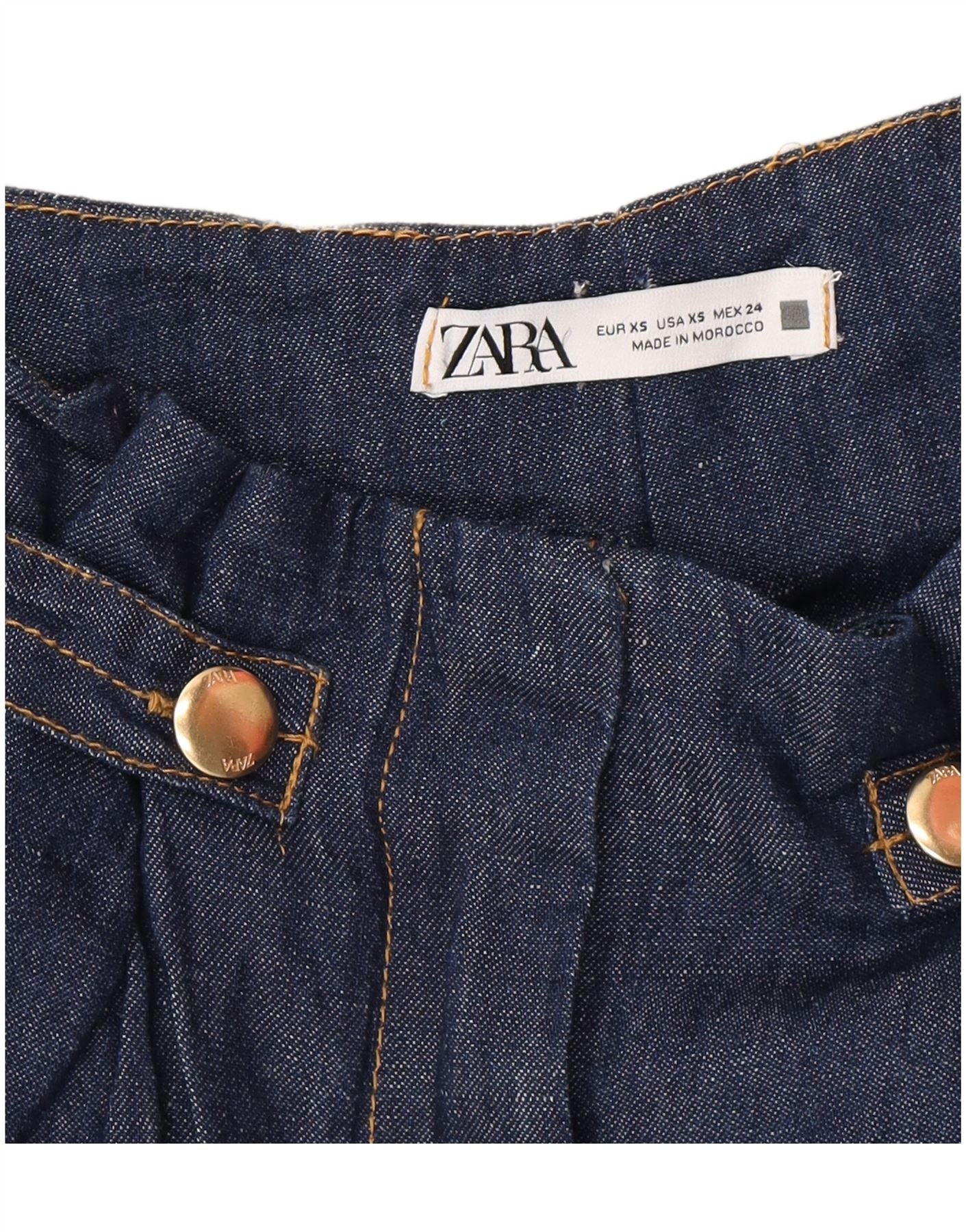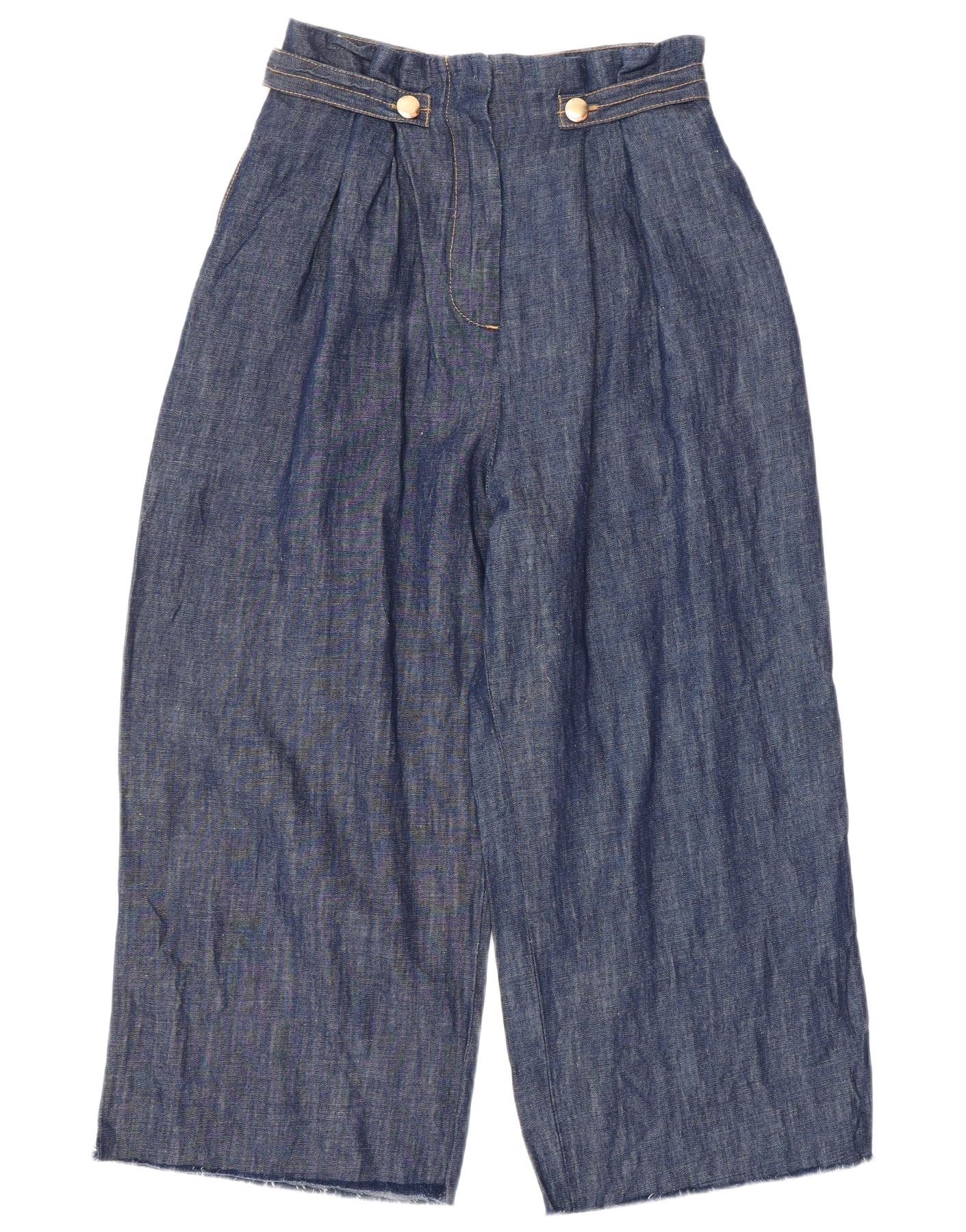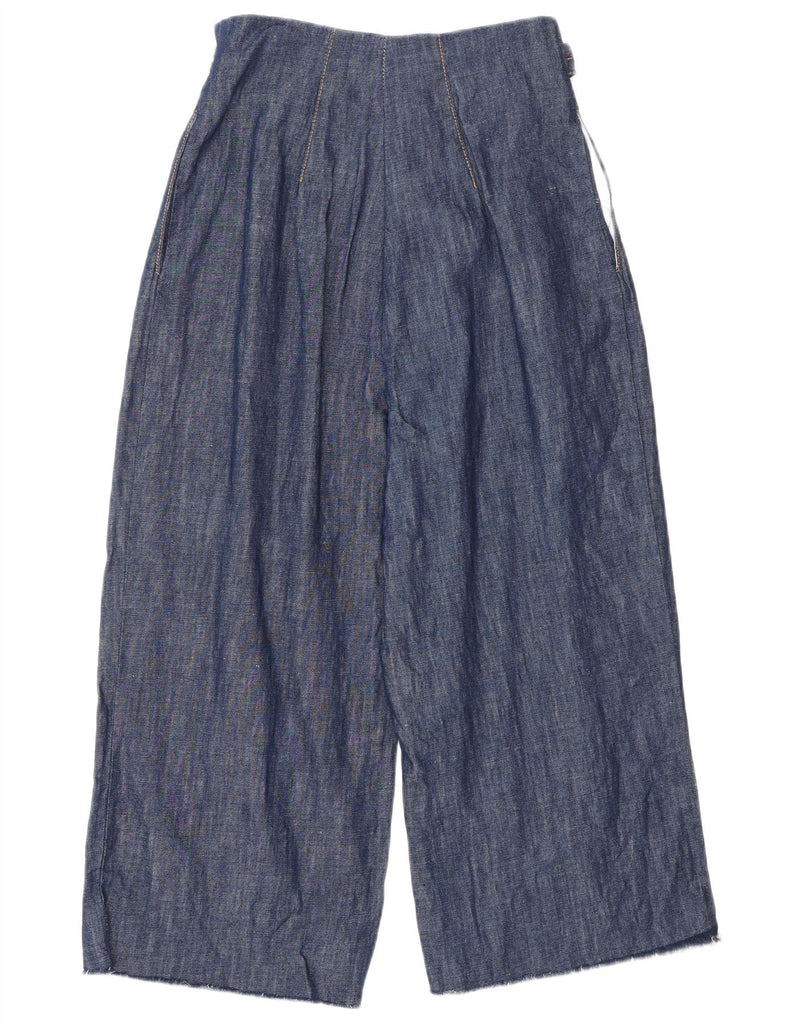 ZARA Womens High Waist Wide Leg Capri Trousers XS W24 L21 Navy Blue Cotton