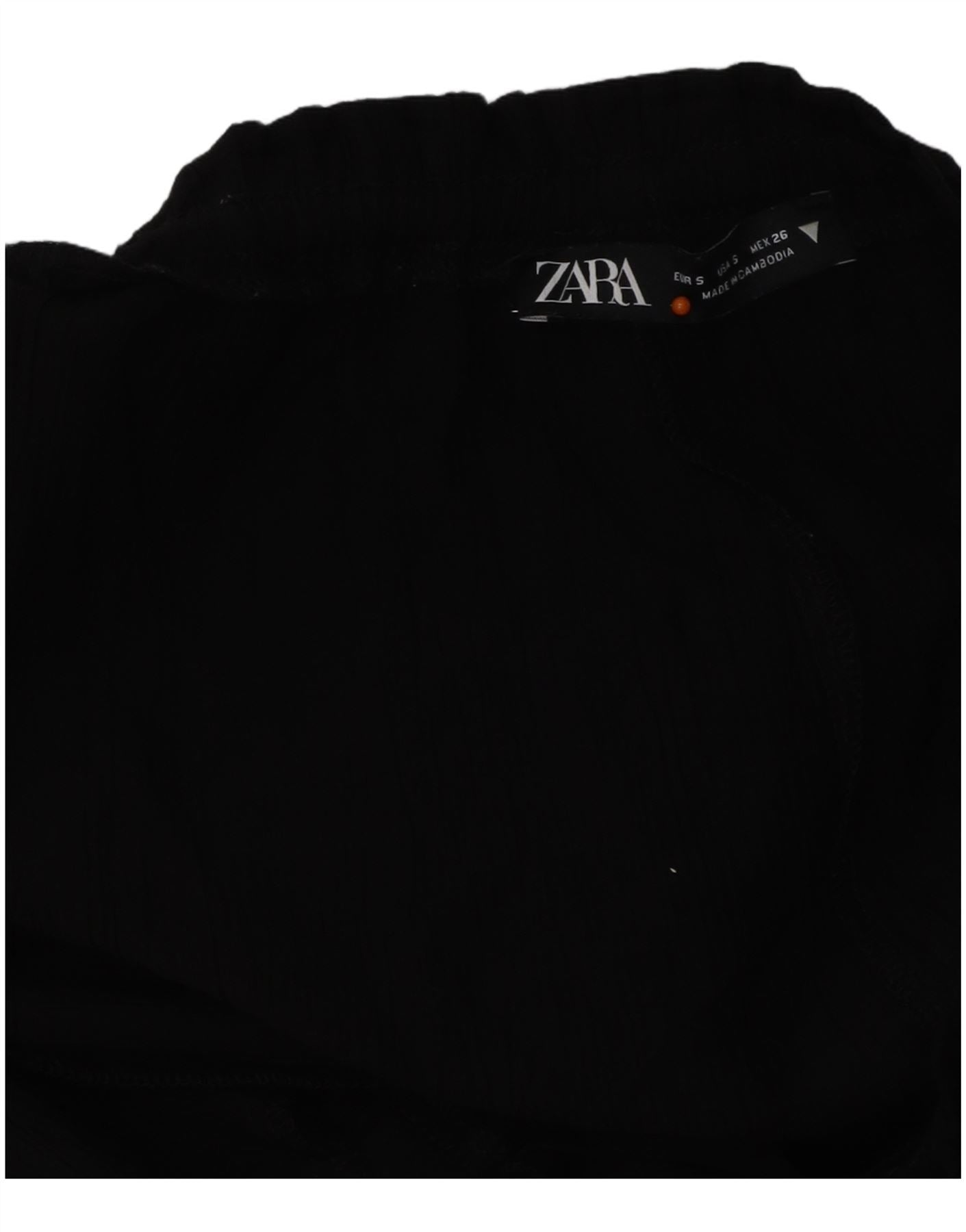 Pantaloni largi pentru femei cu talie înaltă ZARA UK 10 Small W26 L32 Negru