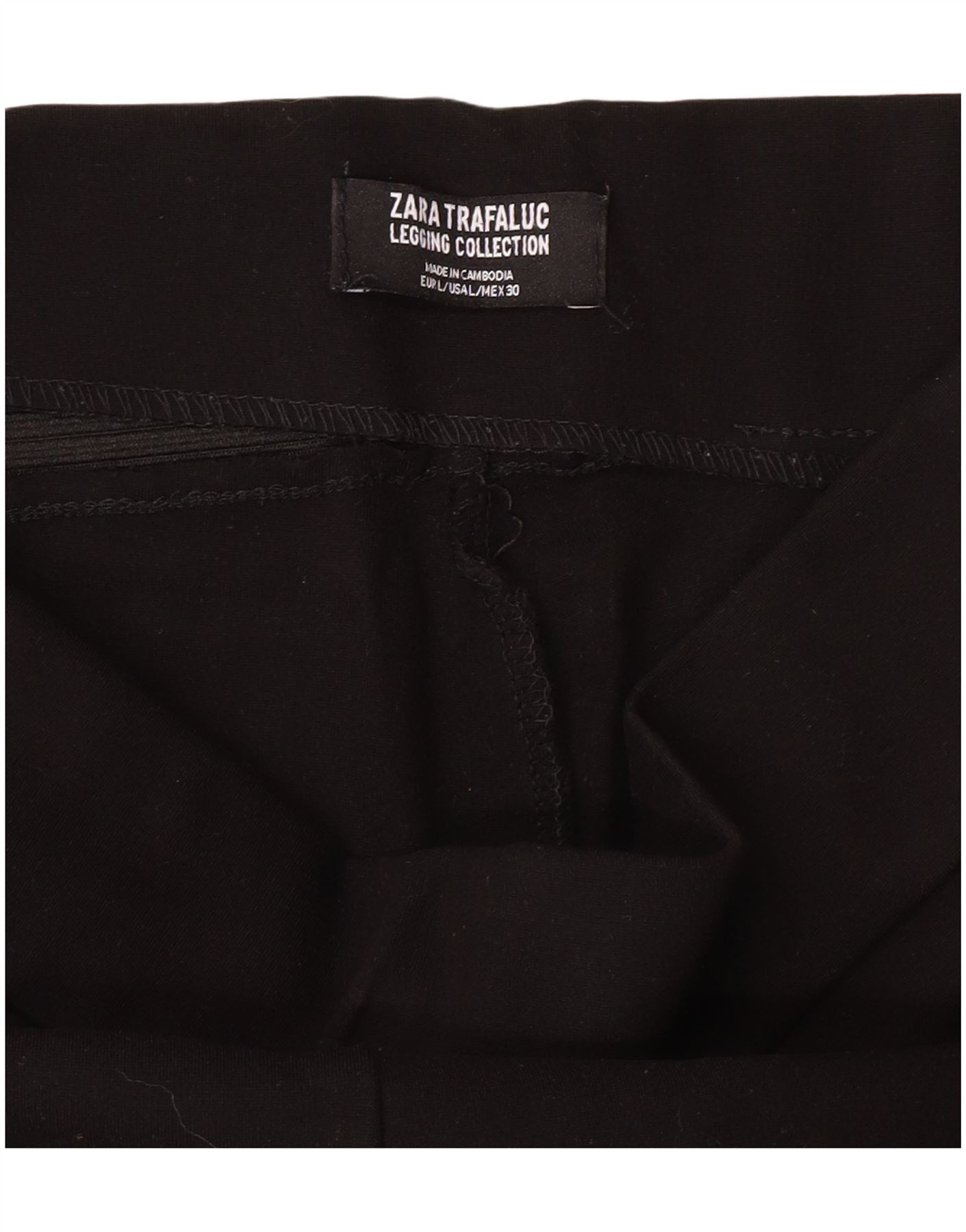 - Descriere AI: Acești colanți Zara de damă din Colecția Legging sunt confecționați dintr-un tricot negru elastic. Au un design cu tragere cu talie elastică pentru confort. Potrivirea subțire este îmbunătățită de un model în dungi pe părțile laterale. Acești jambiere clasice sunt un element de bază versatil din garderobă.