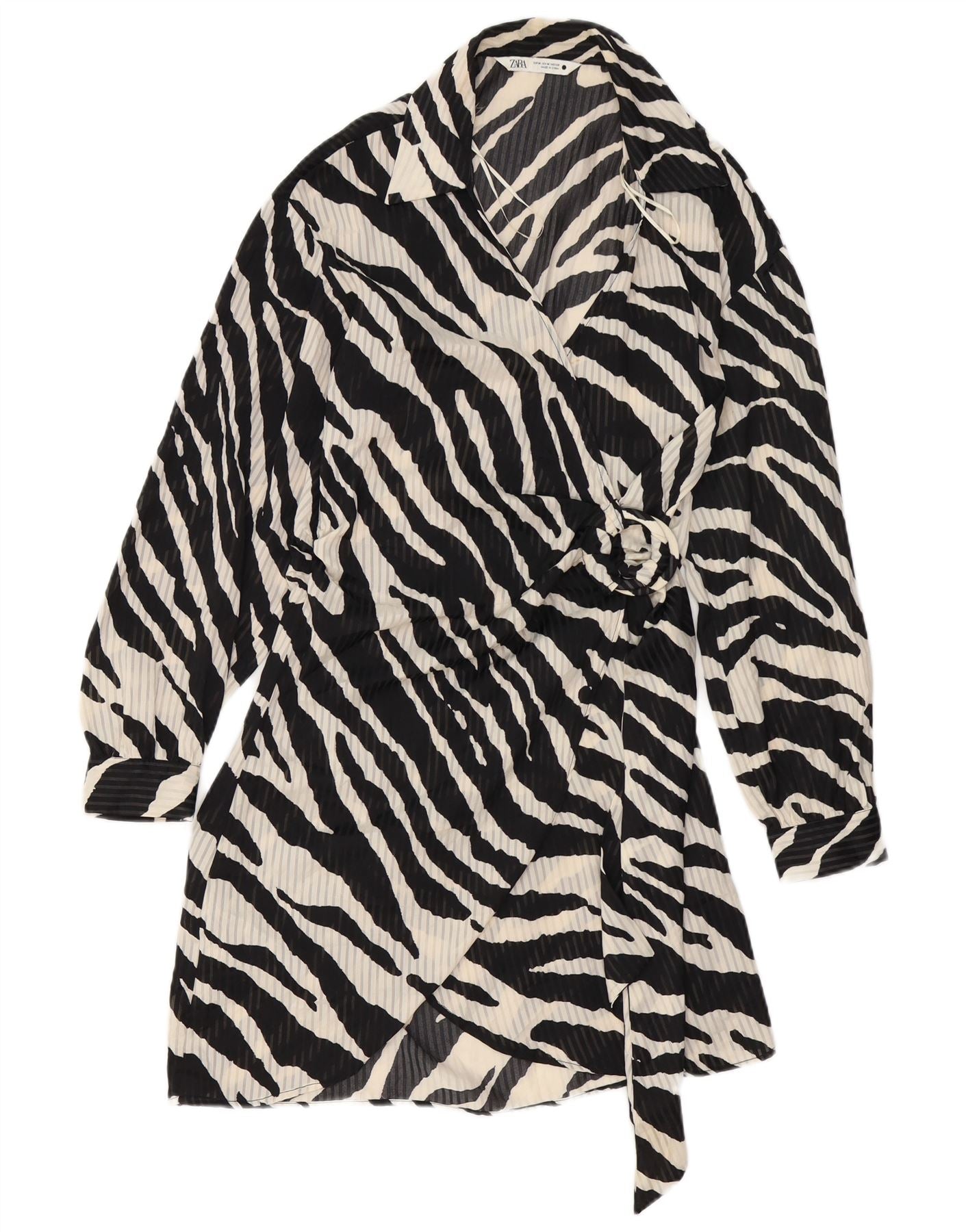 Rochie cu mâneci lungi ZARA pentru femei UK 12 Medium Black Animal Print