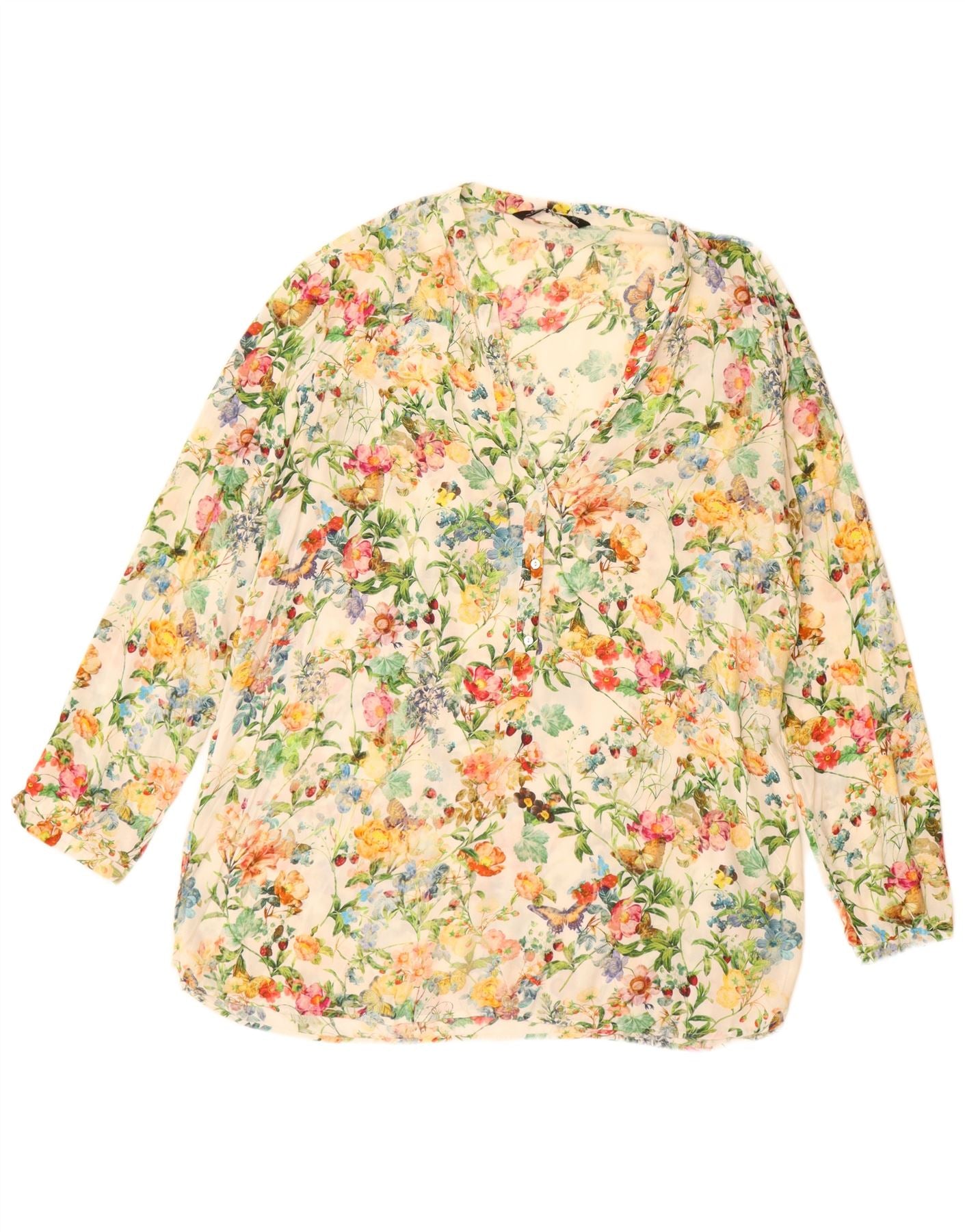 Bluză cu mânecă lungă cu paragate ZARA pentru femei UK 16, mare, alb, floral