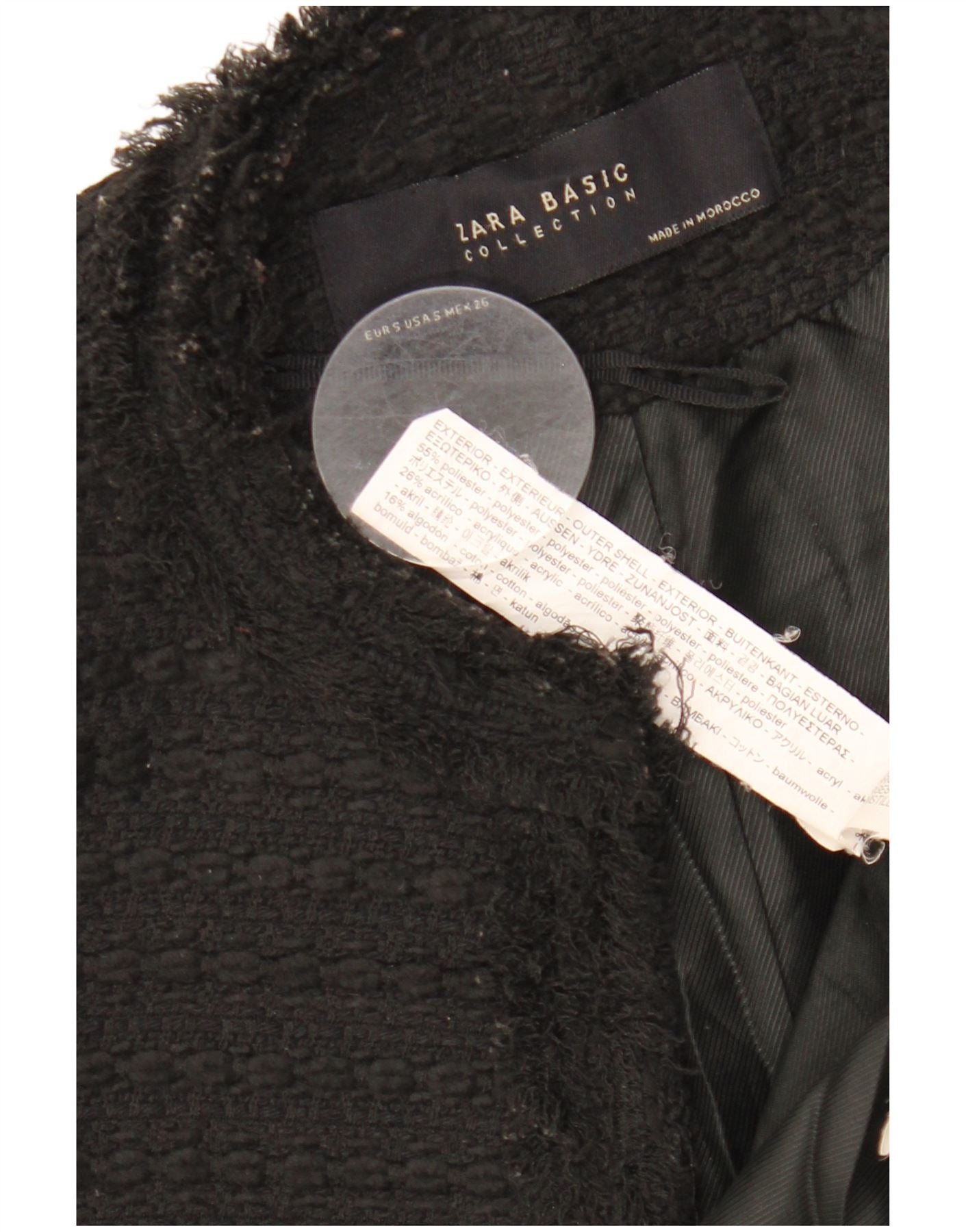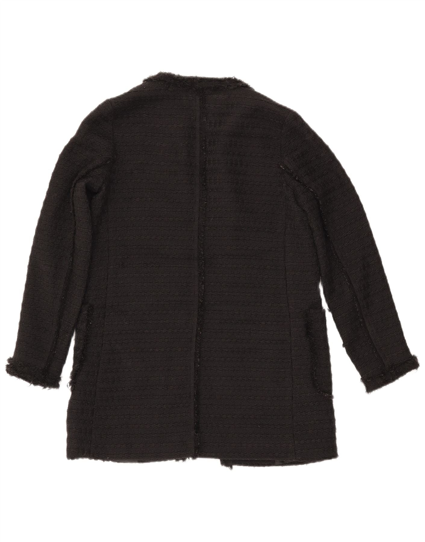 Jachetă pentru femei ZARA cu paragate deschisă UK 10 Poliester negru mic